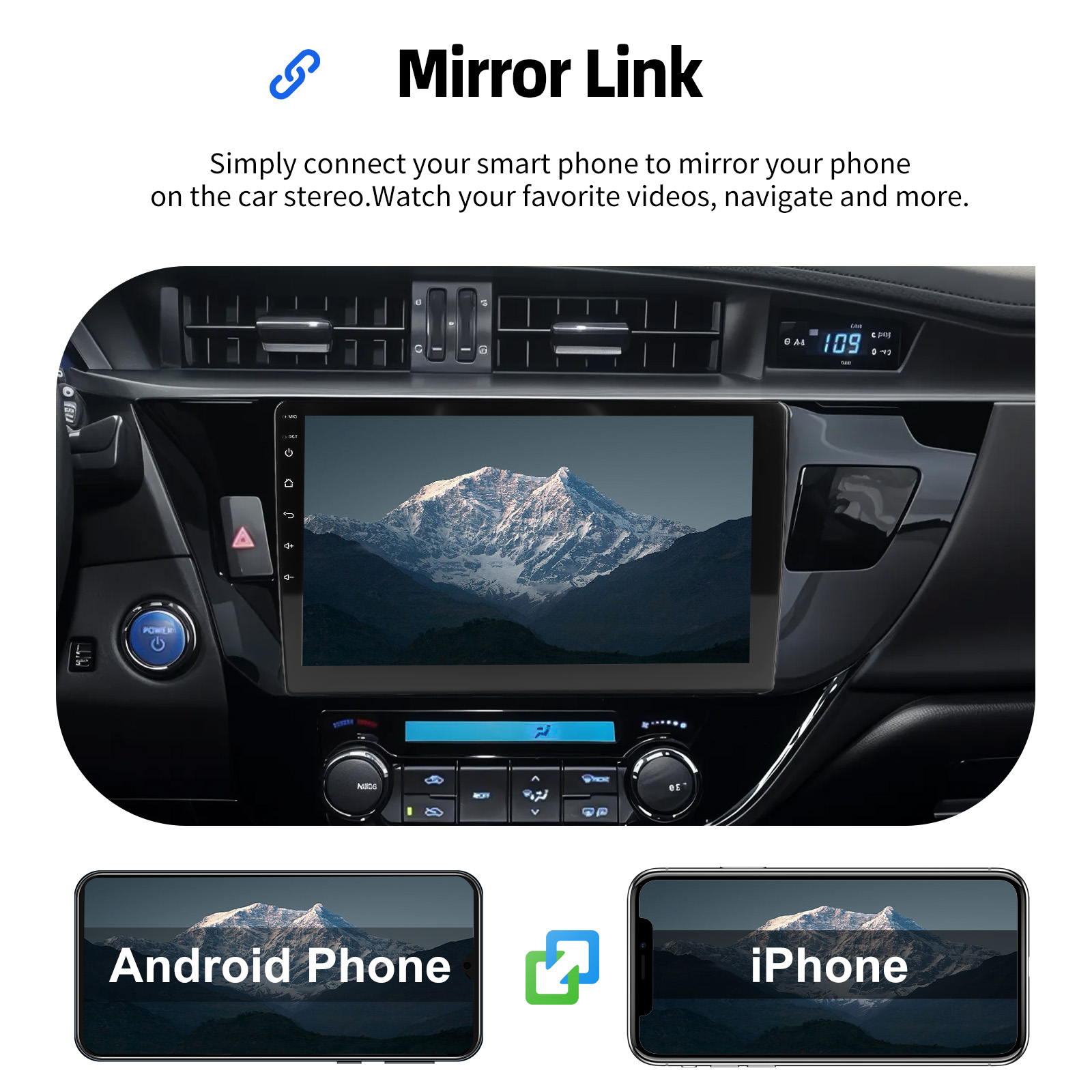 MIRROR LINK: With this car radio, you can experience the amazing Mirror Link function, compatible with iOS and Android phones. You can mirror your smartphone screen to the car radio using apps like Google Maps, Spotify, Youtube, etc. Replace your cell phone with the car screen and turn your vehicle into a smart platform.