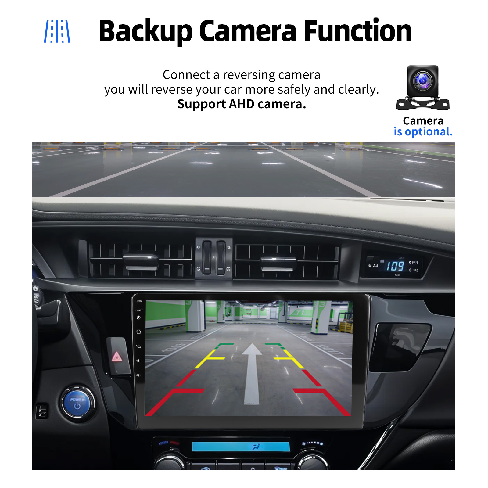 AHD Rear View Camera Input & Steering Wheel Control: Support AHD & CVBS camera. After connecting to the rear view camera. The radio automatically displays the reversing image as soon as you engage reverse gear. Make your daily reversing safer. Support original car steering wheel control to make driving more convenient and safer.