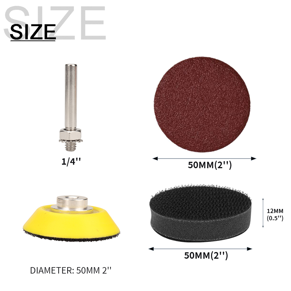 Hook and loop backed - the diameter of the hook and loop sanding pad back is 50 mm/ 2 inch, suitable for most kinds of rotary tools, such as die grinders, air grinders, electric drills, etc.