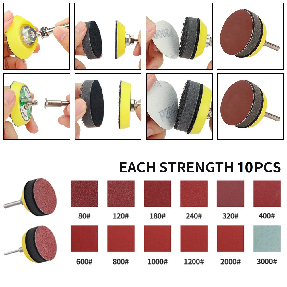 Come with 120 pieces sanding discs pads in 3 grits, 40 pieces for each grit: 80/320//1000.