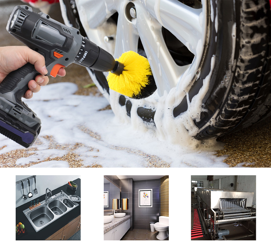 The drill brush is made of high-quality engineering plastics and stainless steel hexagonal joints.