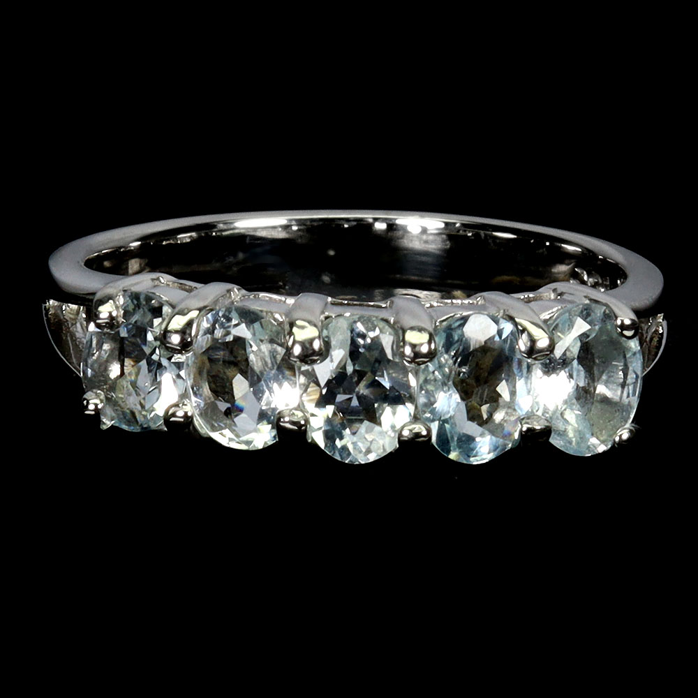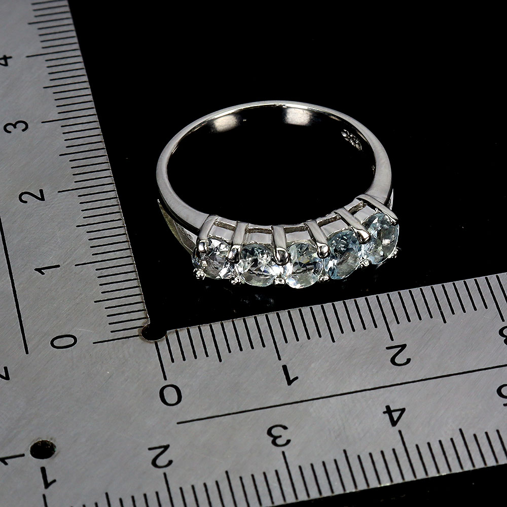 925 Sterling Silver Ring Round Aquamarine 5x4mm Natural Gemstone Jewelry Sz 8.5