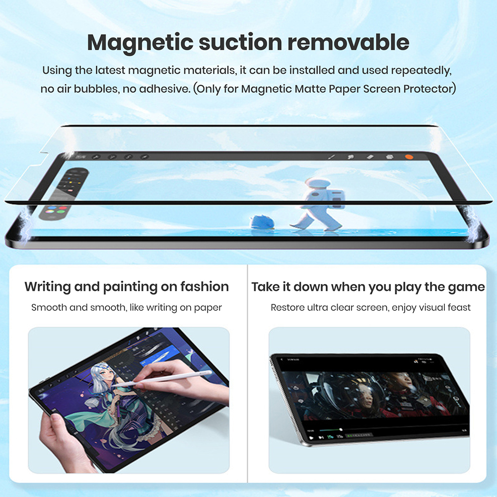 -Magnetic detachable design: This type of paper film adopts advanced magnetic design, ensuring easy and convenient installation and disassembly. No tools required, seamless installation, convenient for replacement or cleaning anytime, anywhere.