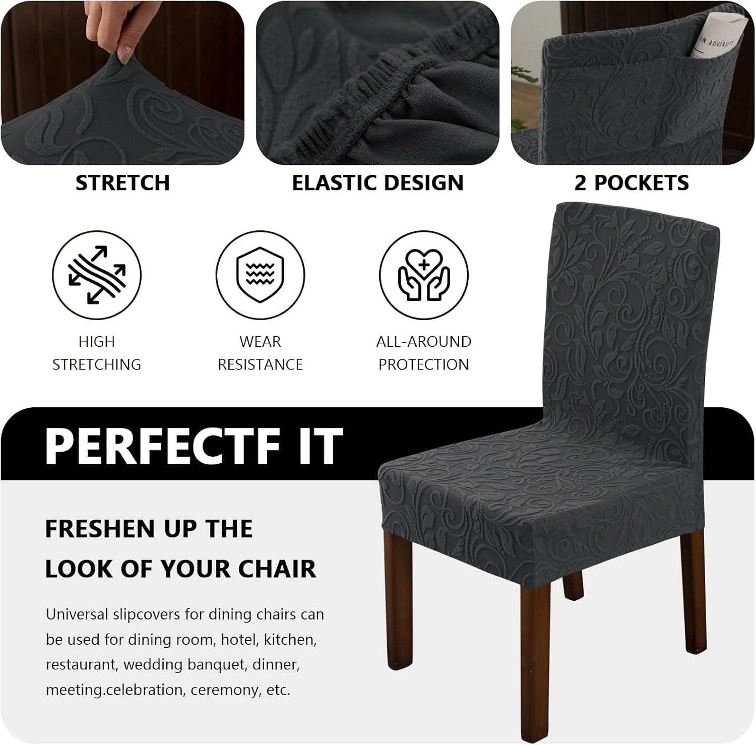 Machine washable, you can hand wash or machine wash with cold water. Our removable chair covers can be washed hundreds of times and no wrinkles. ![]() Specifications: Material: Polyester & spandex Suitable For: Chair Feature: Stretch Type: Dining Chair Covers ![]() Package include: