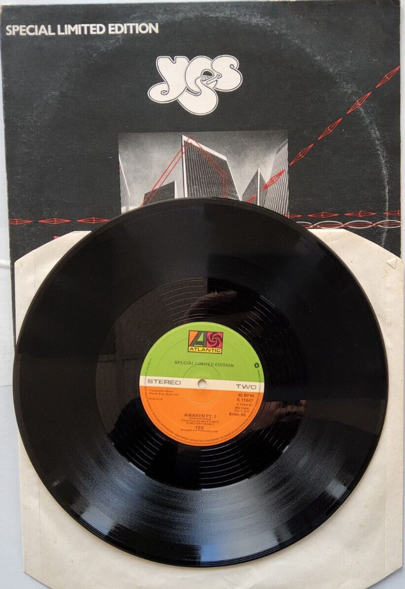 A special limited edition 12" single from prog rock pioneers Yes, released in 1977 to spotlight two standout tracks from their acclaimed album Going For The One. Pressed on 45 RPM vinyl and housed in a UK picture sleeve, this release features the full album version of Going For The One and a shortened Part 1 edit of Awaken, showcasing the band’s symphonic grandeur and lyrical mysticism.