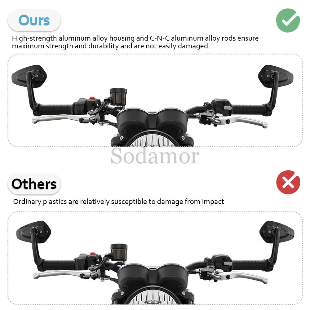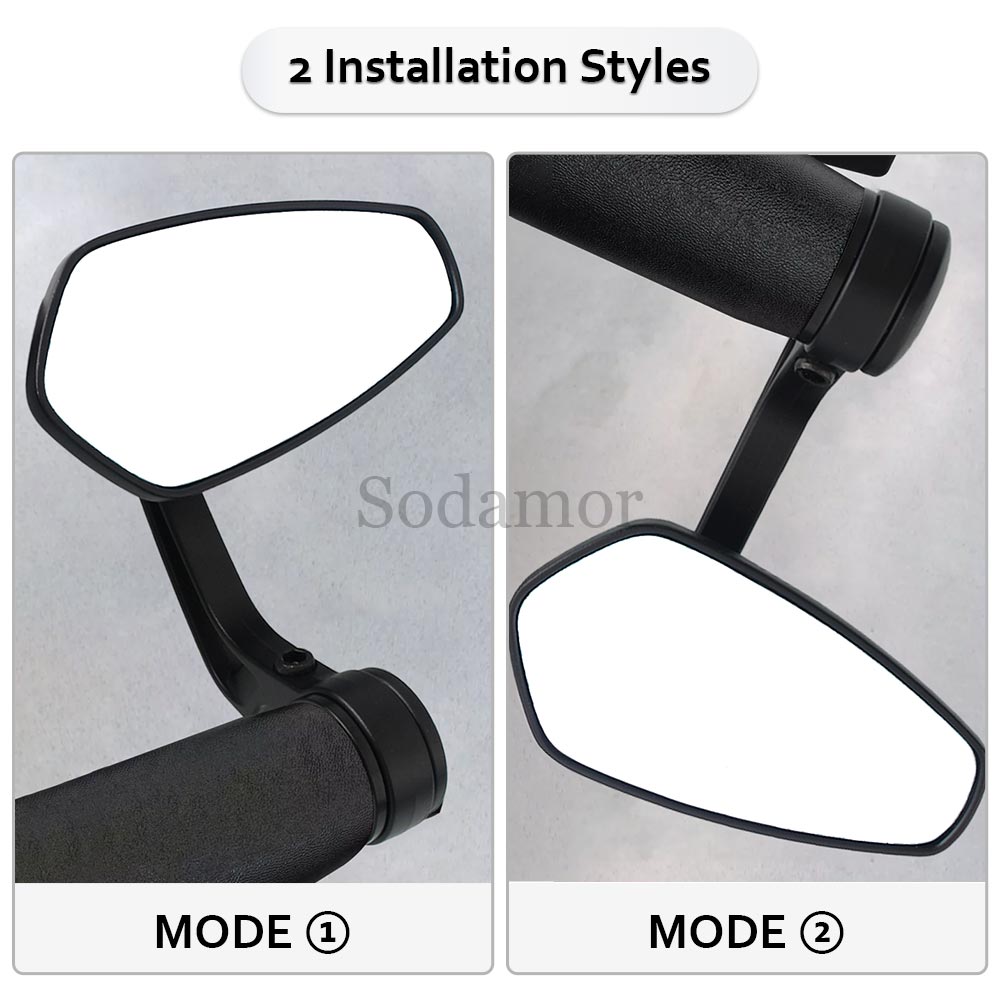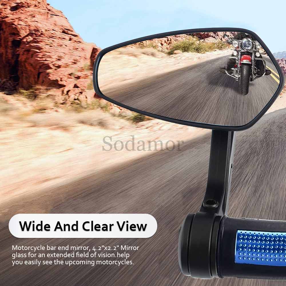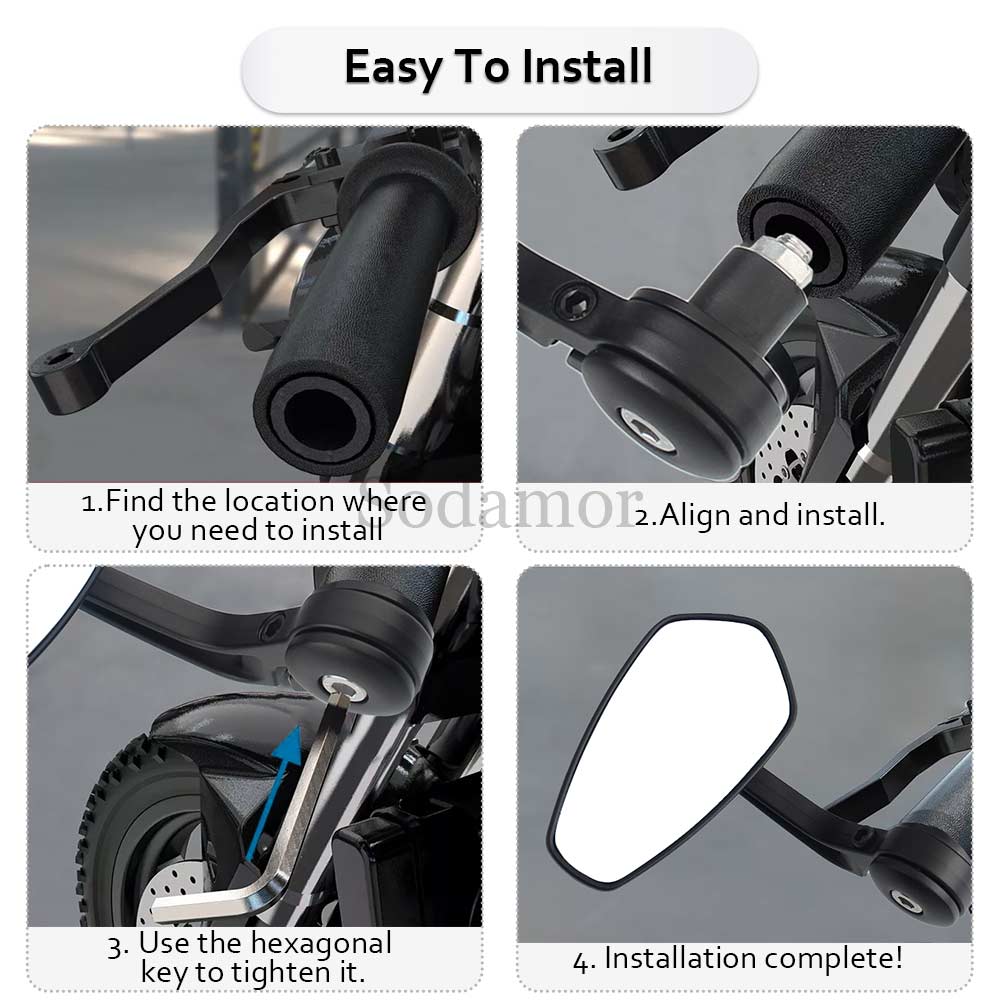 Specification: Item Name: Motorcycle Handlebar Bar End Mirrors Color: Matte Black (matte black will be more dirt-resistant, Not easy to leave fingerprint marks) Glass:White glass Material: Aluminium Alloy + Glass Size: As picture shown Feature: 1.High Quality Material: Using high-strength aluminum alloy casing, C-N-C aluminum alloy rod, ensuring maximum strength and durability, durable use, shockproof and corrosion resistant, suitable for In all weather conditions, you can ride your motorcycle on the road at any time without worrying about damage. 2.Adjustable-design: Design of Ball-type connection joint and adjustment holder, this round style bar end mirror can be 360 degrees rotated and freely adjusted up & down or sideway ,for better visibility! 3.Wide And Clear View: Motorcycle bar end mirror, 4.2"x2.2" Mirror glass for an extended field of vision.Help you easily see the upcoming motorcycles. Widen your vision and keep your driving safety. 4.Wide Compatibility: These side mirrors come with 2 rubber expansion screws(Elastic anti-slip rubber can absorb vibrations and reduce mirror shake), which are suitable for a handlebar inner diameter of 17.5 mm to 21 mm. So suitable for most brands of motorbike, Street Bike, ATV, Dirt Bike, Bicycle and Scooter, Fits for Most Harley Davidsons, fit for Suzuki, fit for Cruiser Chopper, fit for Honda, fit for Kawasaki Cruisers, fit for Touring Bikes, fit for Sport Bikes, fit for Electric Scooters etc. 5.Stylish Design: Our bar end mirrors feature a contemporary shell with an exclusive design, offering a sleek and sophisticated look. Elevate your motorcycle's appearance and add a distinctive touch of individuality with this striking upgrade. 6.Easy to Install: Featuring an innovative rubber expansion screw design, our mirrors offer a quick and straightforward installation process. Even beginners can set it up in no time, allowing you to promptly benefit from your new accessory. Fitment: Fit for motorcycles and sports bikes with standard 0.68"(17.5mm)-0.83”(21mm) diameter handlebars. Fit for Honda,for Yamaha, for Kawasaki, for Ducati, for Suzuki, for Aprilia, for BMW, for Cafe Racer, for scooter, for dirt bike, for quad bike, for snowmobile, for motorcycle, for Bicycle, for electric scooter, ATV, ect. Such as Fit for : Compatible for Kawasaki: for Street bike : Z1000 / Z750 / ER-6F / ER-6N for Cruiser and chopper: VN series for Dirt bike : Versys / KLX series Compatible for Suzuki: for Street bike : B-King / GSF1250 / GSF600 / Gladius SFV650 / SV650 / SV1000 / GSR600 for Cruiser and chopper : Boulevard / Intruder / Volusia for Dirt bike: V-Strom / DR series for Scooter: Skywave / Burgman series / Gemma Compatible for Yamaha: for Street bike : XJR1300 / XJ6 / V-max / MT-01 / MT-03 / TDM900 / FZ1 / FZ6 / YBR for Cruiser and chopper: XVS950 / XV1900 / XVS1300 / V-Star / Virago / Warrior / Royal Star for Dirt bike : XT660 / WR250 / WR125 / XT125 for Scooter: Majesty / X-Max / X-City for 50 90 300 DVX / Thundercat / Arctic Cat H1 / Can-Am ATVs / DS / DS 250 450 650 / Renegade for 500 800 / Outlander 400 500 650 800 Compatible for Honda ATVs: for TRX 90 / TRX450R / TRX700 / 250EX 300EX 400EX / Foreman / Rancher / Recon / Rincon / Rubicon Compatible for Kawasaki ATVs: for KFX 50 90 400 450R 700 / Bayou / Brute Force 650 750 / Prairie Compatible for Kymco ATVs: for Kymco / Kymco Mongoose / Kymco MXU Compatible for Polaris ATVs: for Polaris 50 90 / Polaris / Outlaw 450 MXR / Outlaw 500 / Outlaw 525 / Scrambler Big Boss / Sportsman 300 400 500 550 800 850XP Compatible for Suzuki ATVs: for Z50 Z90 Z250 Z400 LTR450 / QuadRacer 250 / Quadzilla / Eiger /KingQuad /Ozark Compatible for Yamaha ATVs: for Grizzly / Raptor / Raptor 50 90 / Raptor / Banshee / Blaster / Warrior / Wolverine / YFZ 450 /Grizzly 350 450 550 700 / Big Bear 400 250 / Rhino Packing List: 1 Set white lenses handlebar rearview mirror(Left & Right).