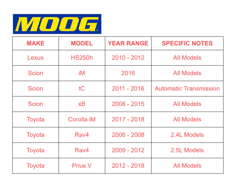 MOOG Front Wheel Hub Bearing for Toyota Prius Rav4 Scion xB tC 2010-2012 5Lugs