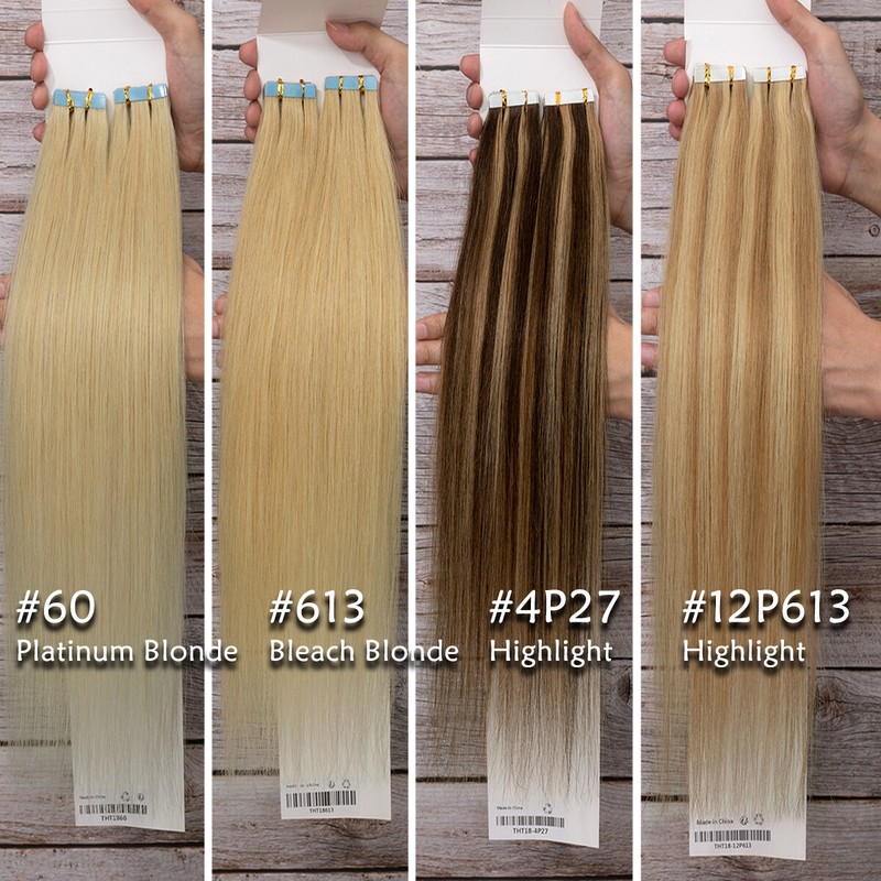 Thick 10/20pcs Tape In Remy Human Hair Extensions Skin Weft FULL HEAD BLONDE USA