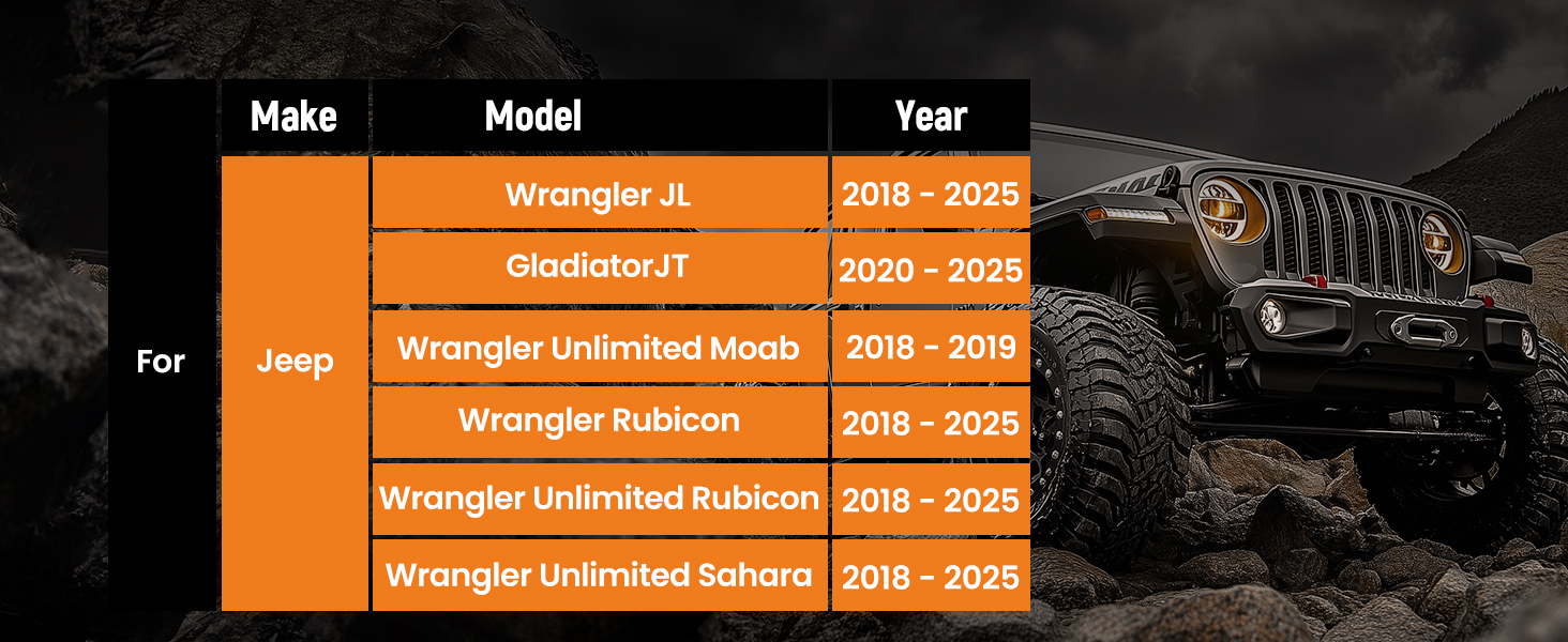 for JeepWrangler Unlimited Rubicon 2018 - 2025