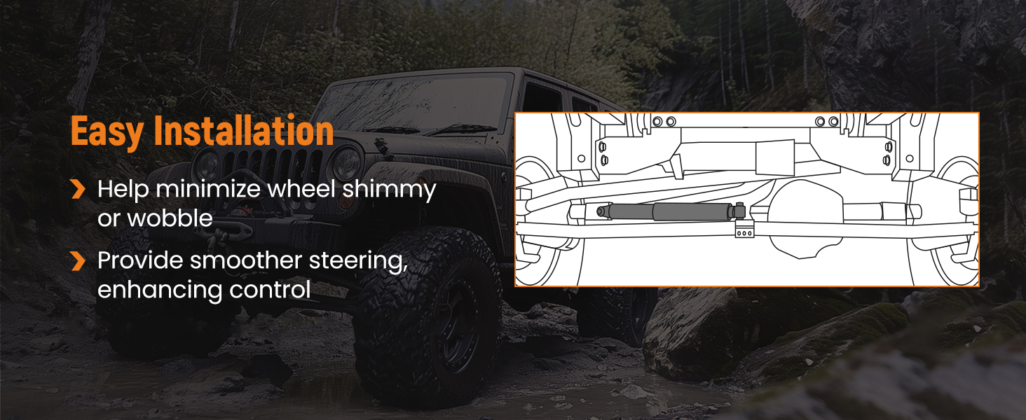 Single Steering Stabilizer for Jeep Wrangler JL/ Gladiator JT 2018-2025
