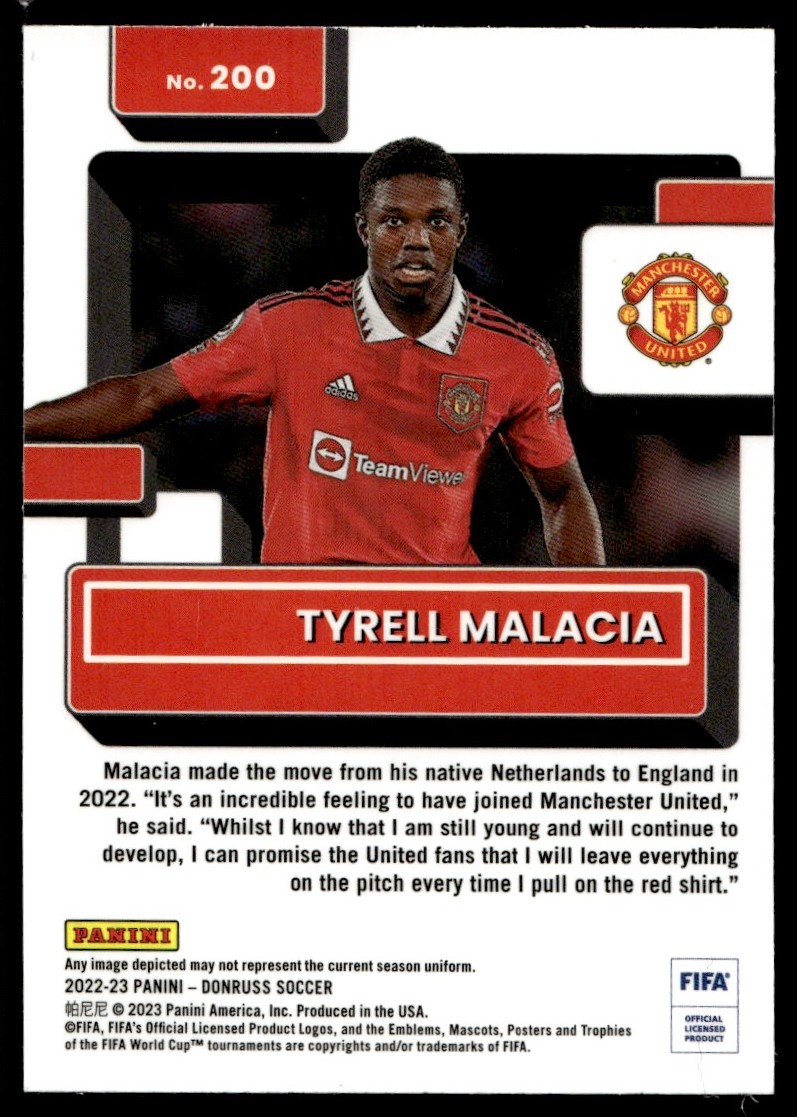 2022 Donruss Optic Tyrell Malacia Rookie Manchester United #200