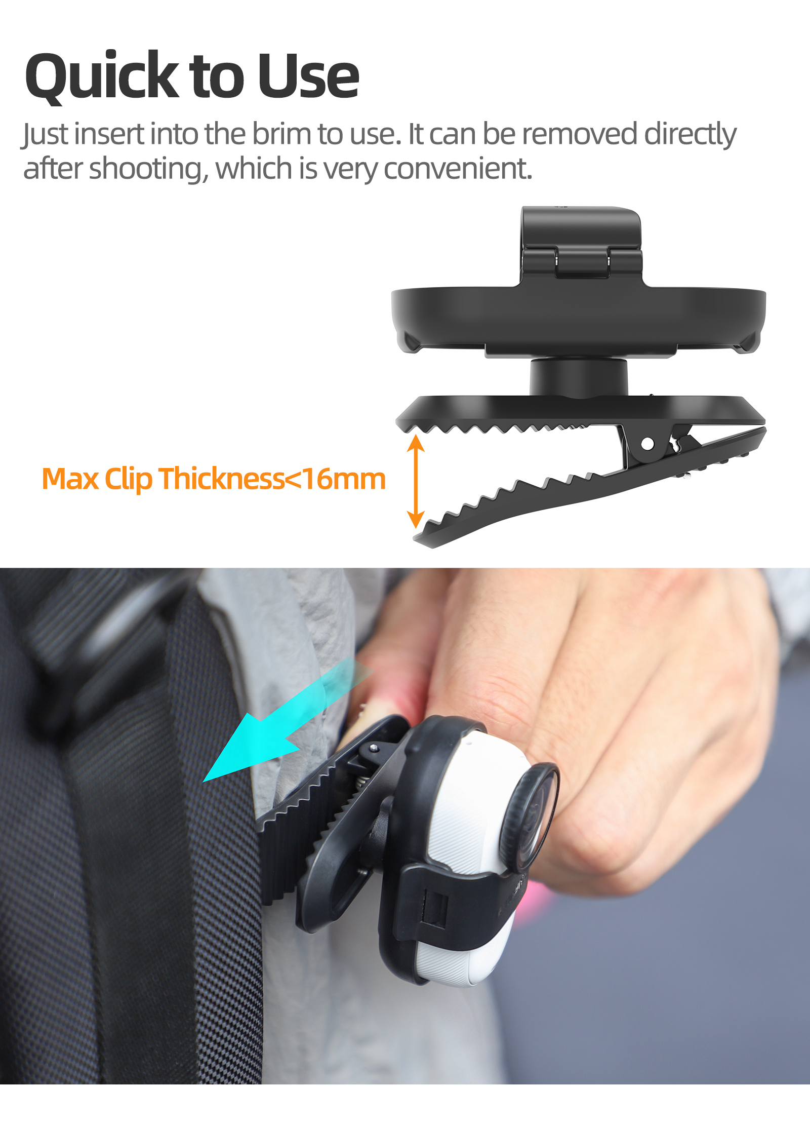 5. Triple stability enhancement to prevent slipping. The fin-shaped insertion structure, combined with a anti-loss strap, ensures the camera stays securely in place.