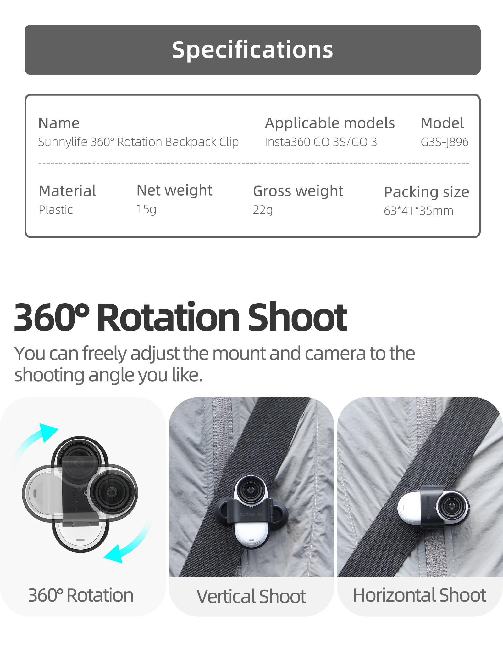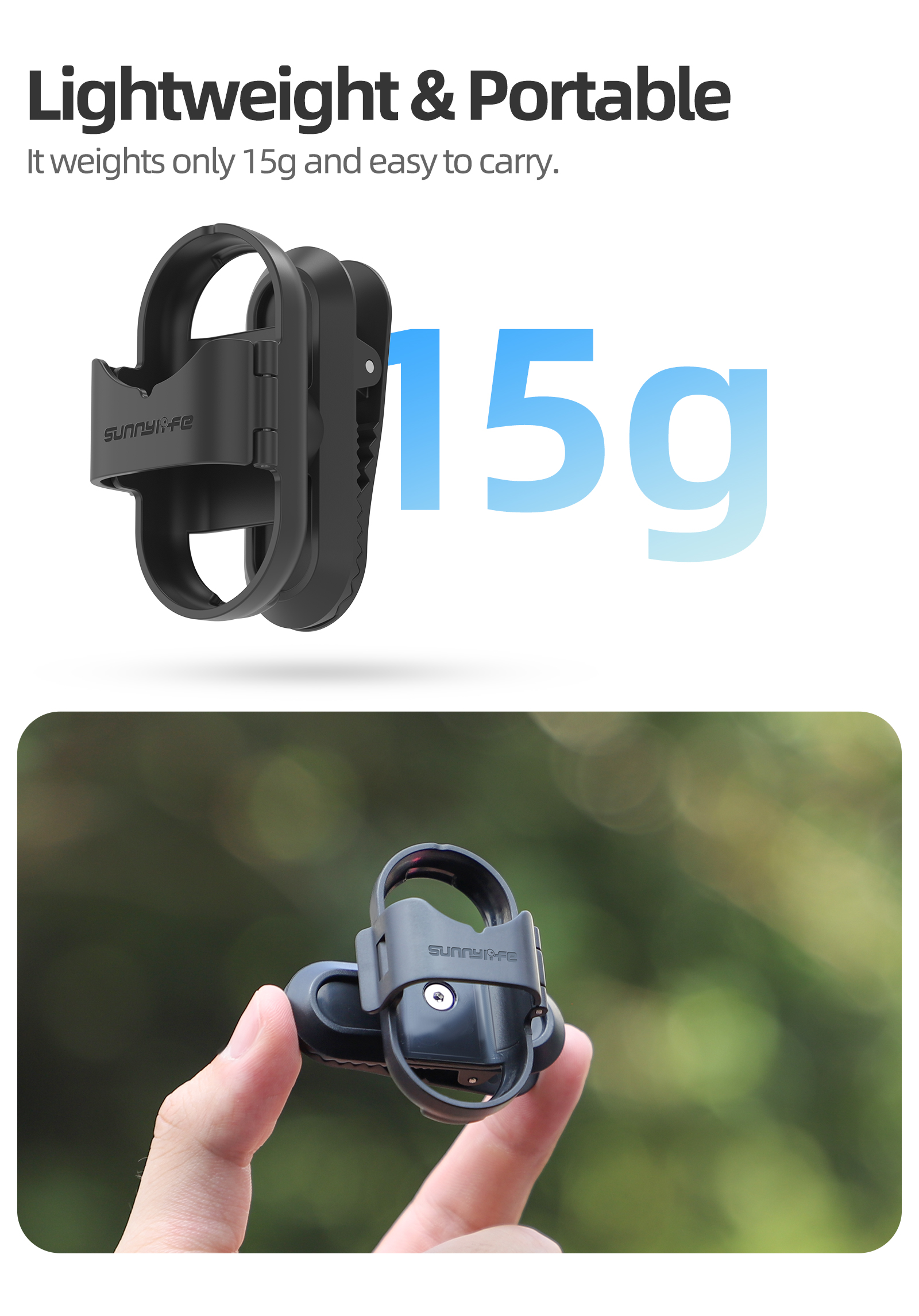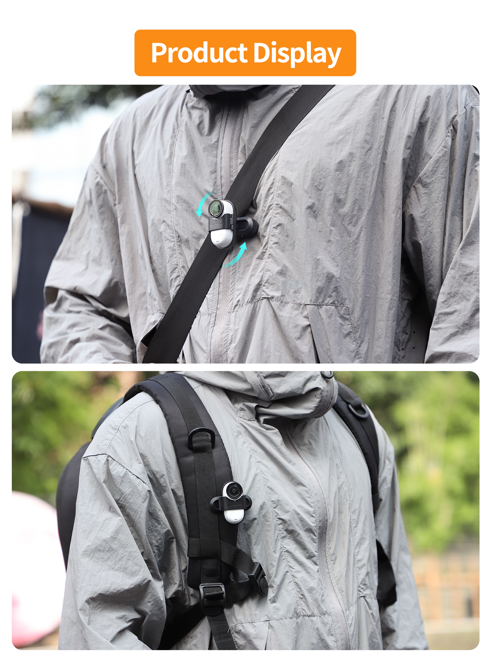2. a variety of use scenarios, can be hung on the backpack strap, the side of the hat, clothes, to meet different shooting needs.