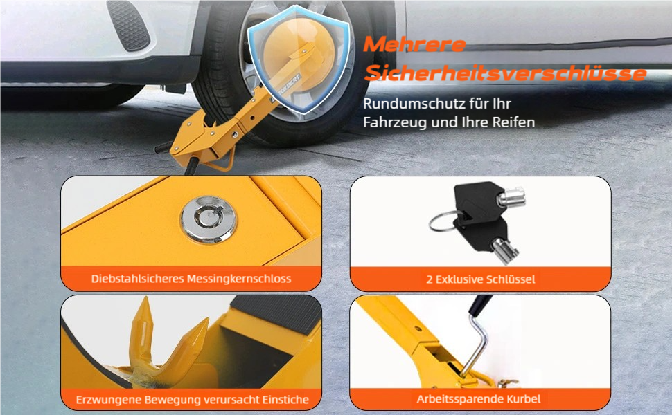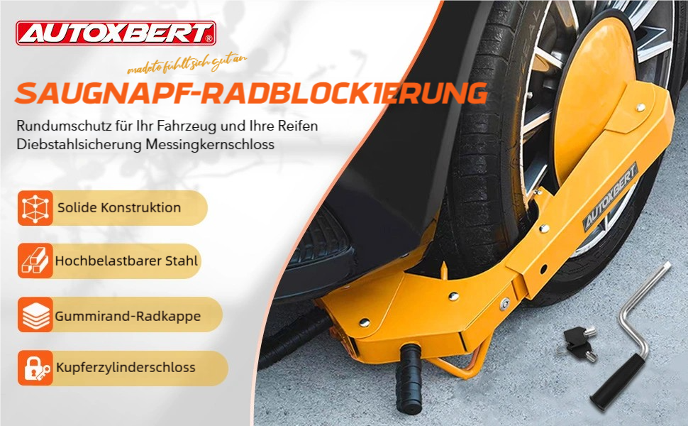 Die AUTOXBERT Hochleistungs-Radkralle geht über herkömmliche Radkrallen hinaus. Sie bietet sowohl eine Radkrallen- als auch eine Diebstahlsicherungsfunktion und damit umfassenden Schutz vor Diebstahl. Komfort mit zwei Schlüsseln: Im Lieferumfang sind zwei Schlüssel enthalten, sodass Sie immer einen Ersatzschlüssel haben. So können Sie Ihr Fahrzeug bequem öffnen und sichern und haben gleichzeitig Ersatzschlüssel für den Notfall. Mit unserer Hochleistungs-Radkralle genießen Sie zusätzliche Sicherheit und schrecken potenzielle Diebe ab – für ein beruhigendes Gefühl der Sicherheit.