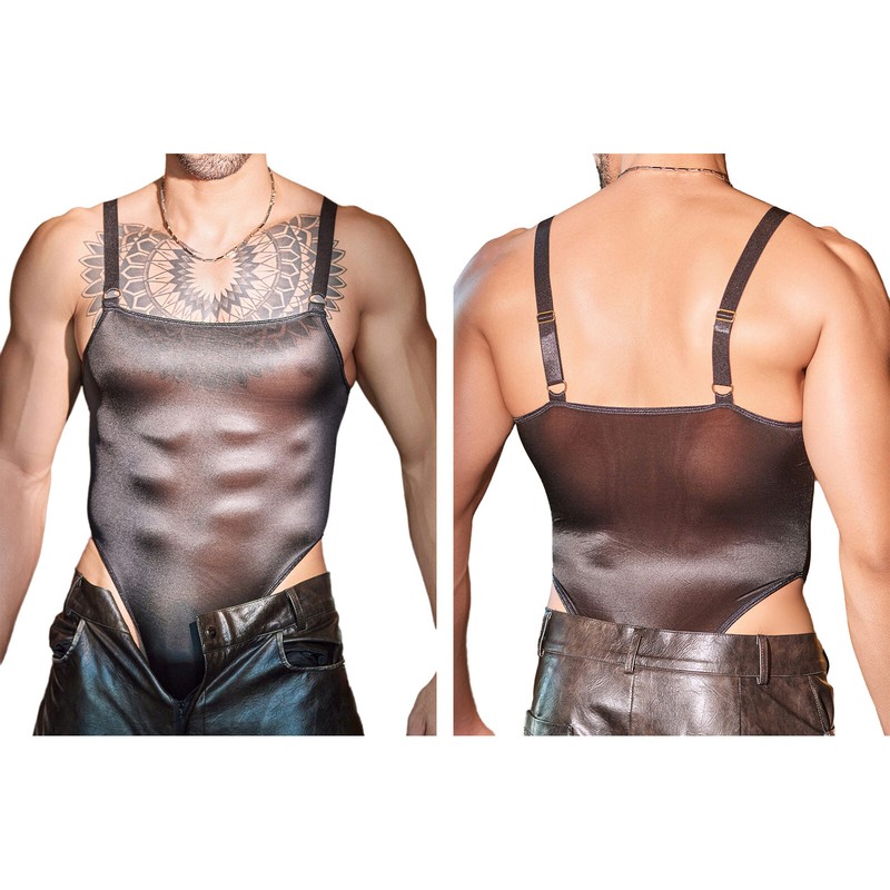 The high-cutting and backless design showcases the male physique, creating a bold and alluring look.