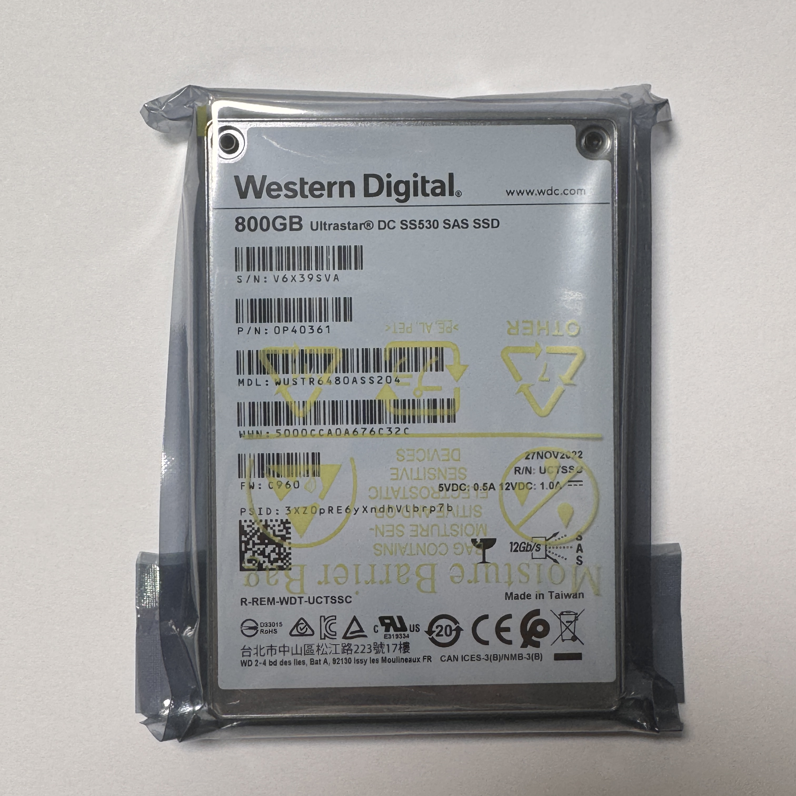 Western Digital SS530 800GB SAS 12Gb/s SSD P/N: 0P4031 Model: WUSTR6480ASS204