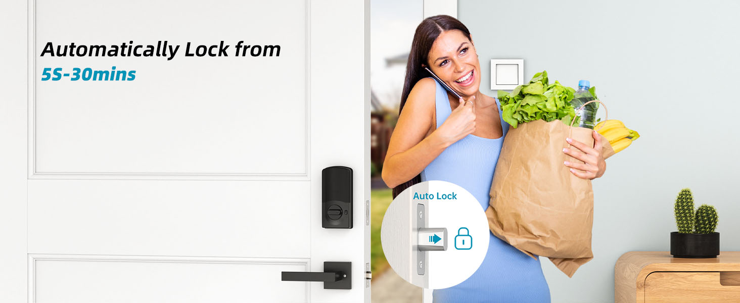 【Auto Lock】Monitor electronic door lock status anywhere via the app. Digital keypad door lock allowing you to set auto lock after 5 to 900 seconds or apply 1-touch motorized locking. No need to worry about whether locked
