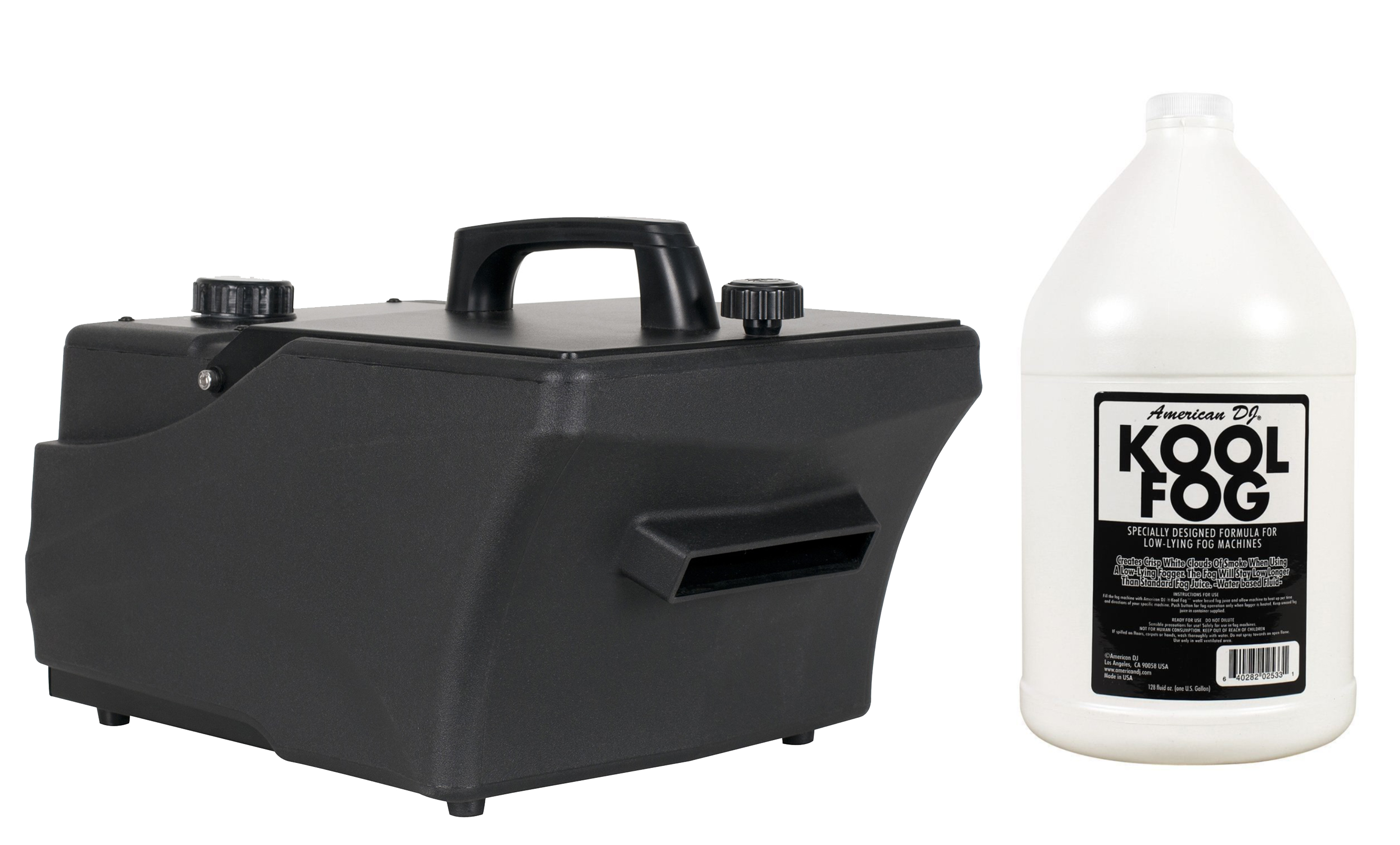 American DJ Kool Fog 1 US Gallon of fog juice, use for low lying fog machines. Don't use generic fogs that damage equipment and possibly void your warranty get genuine American DJ Fog and ensure long life and great fog effects.