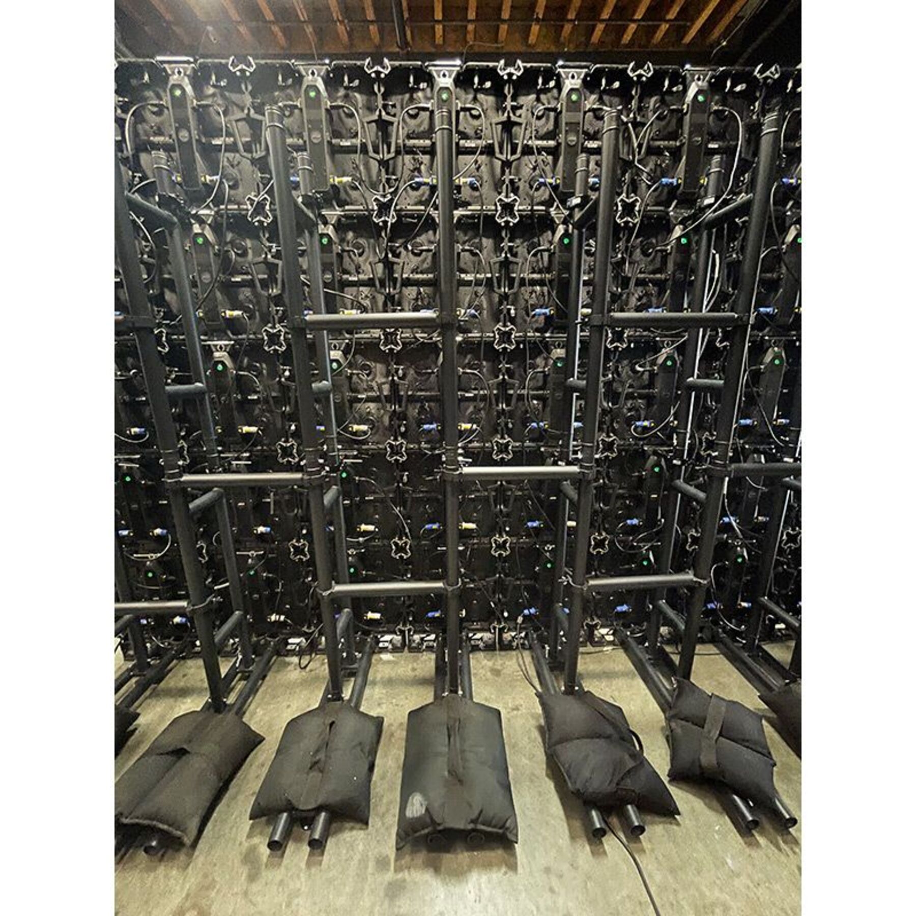 VSGSB Ground Support Base, VSGSLT Ground Support Ladder Truss and VSGSCSB Clamp Support Bar can be used to create a solid frame to support a Vision Series video wall from behind. This can be used to setup a freestanding screen of up to six panels in height and unlimited width, with ballast provided using conventional sandbags or stage weights. The system is designed for use with the existing VSRB1 Rigging / Ground Stack Bar, which sits between the lowest panel and the ground, as well as the VSRQR Rear Quick Clamp, which connects the rear of a panel to the Ground Support Ladder Truss behind. All products in the new Ground Stack System are robust, lightweight, and finished in matte black, making them ideal for use by production companies and on touring productions.