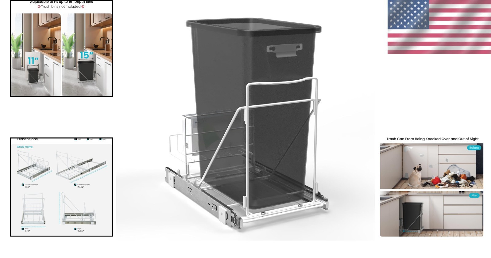 Accommodates Multiple Sizes: Perfectly fits trash bins measuring from 11.22”–15.94” in depth and a max width of 9.84”.