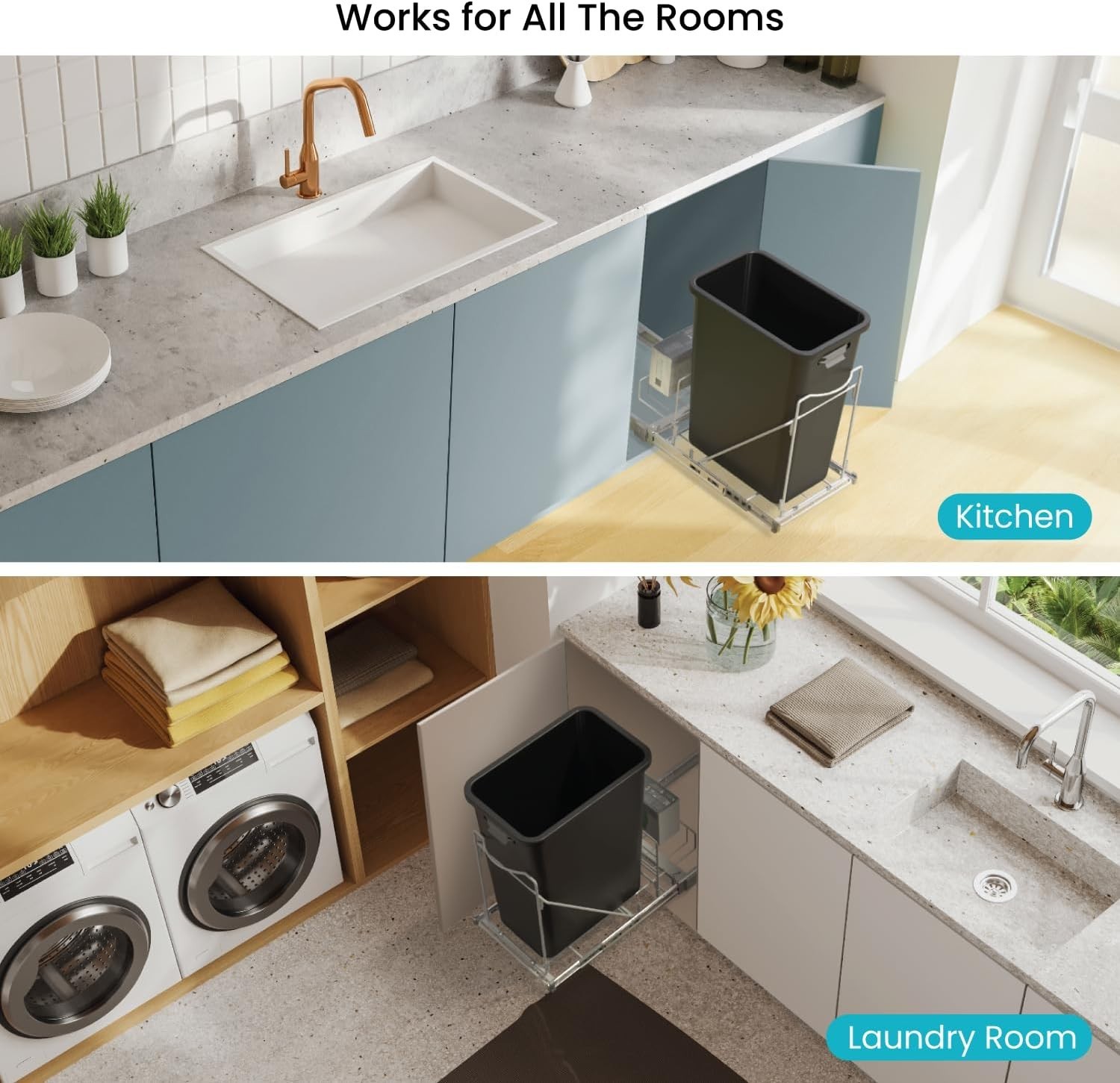 Smooth Gliding Frame: Enjoy effortless access to your under-sink trash can with smooth, full-extension gliders for simple disposal.