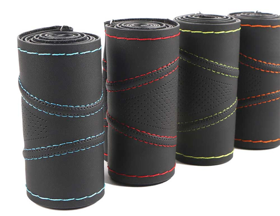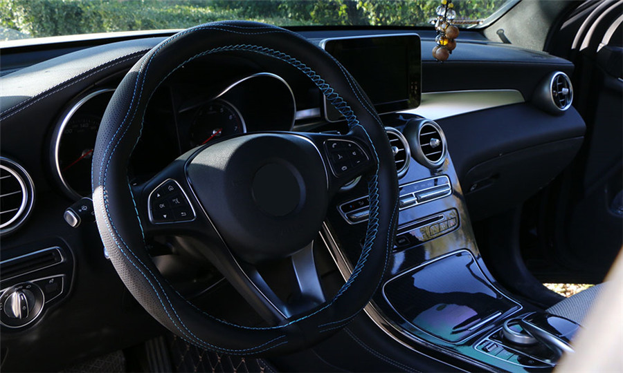 Steering wheel cover is made of Micro Fiber Leather, soft and comfortable material, advanced embossing technology; the appearance of high-grade and breathable durable. Beautiful lines (good grip) can play the role of anti-skid, it improve safety driving. The steering wheel in the long term after the use of serious wear and tear, affect the appearance. Our steering wheel covers hide the existing wear, perfect trim and protect your steering wheel. This steering wheel cover is suitable for medium size steering wheel diameter 38cm, 95% of the general car.