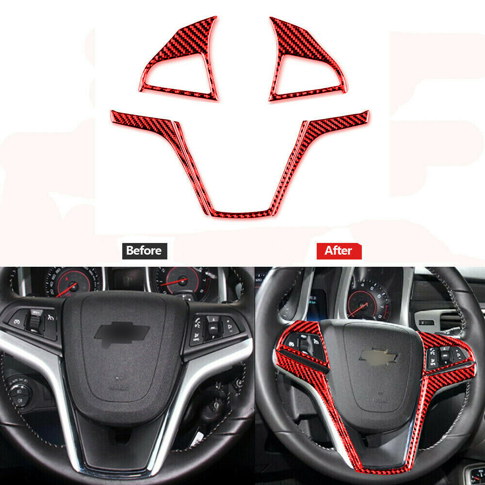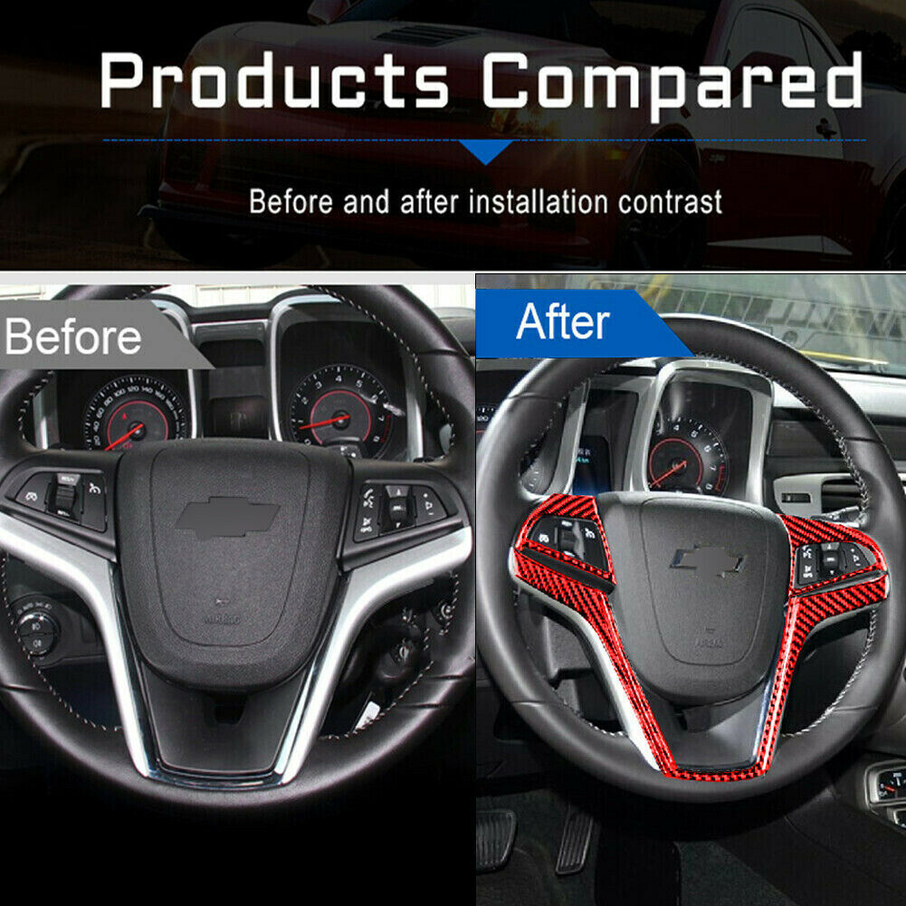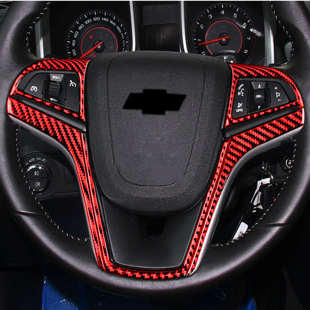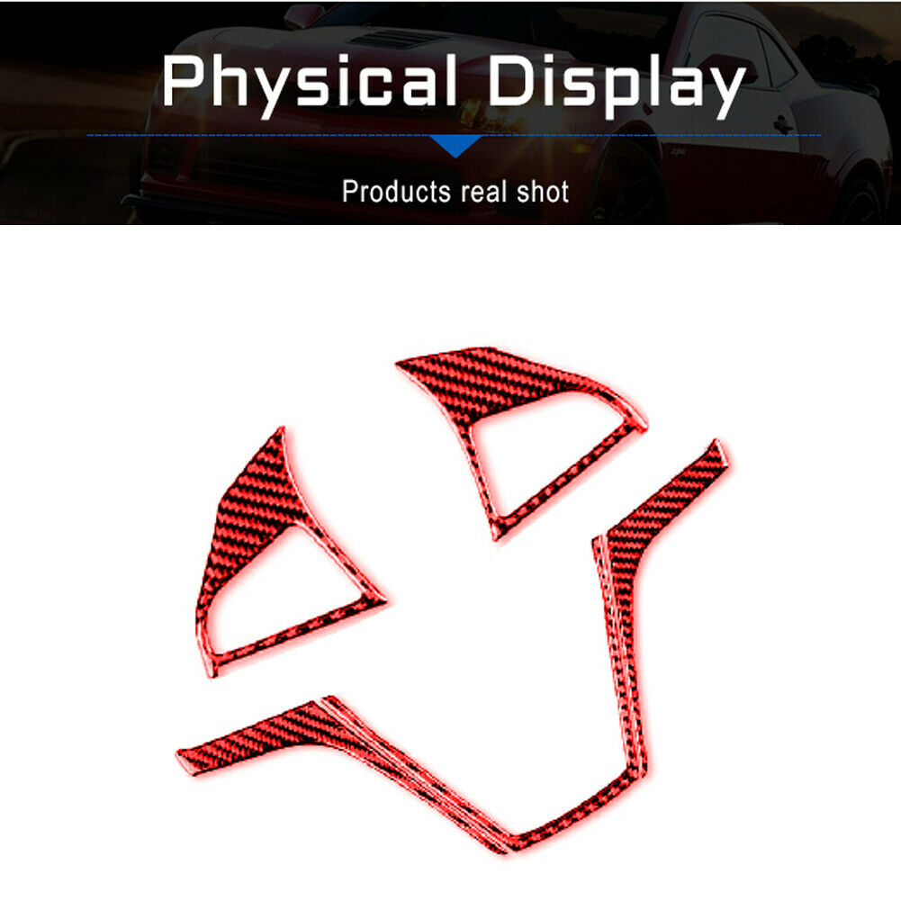 5Pcs Red Carbon Fiber Steering Wheel Cover Trim For Chevrolet Camaro 2010-2015