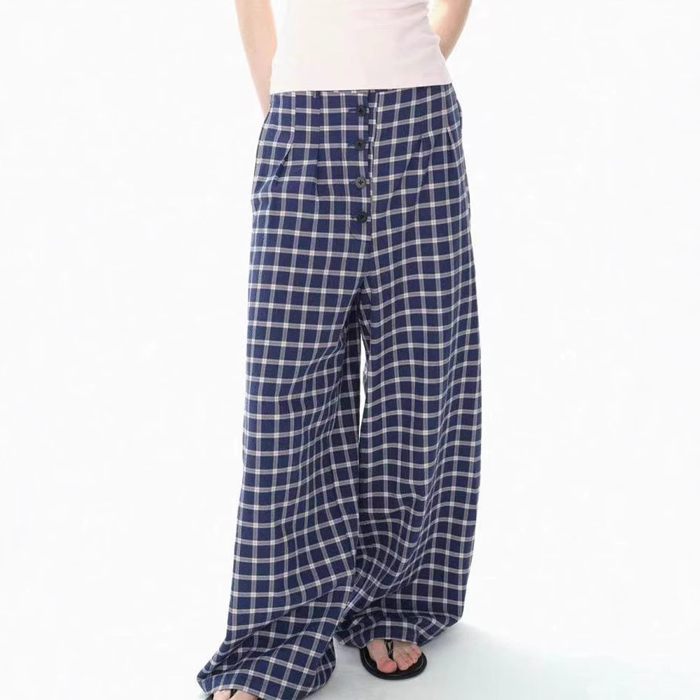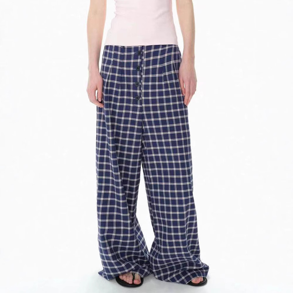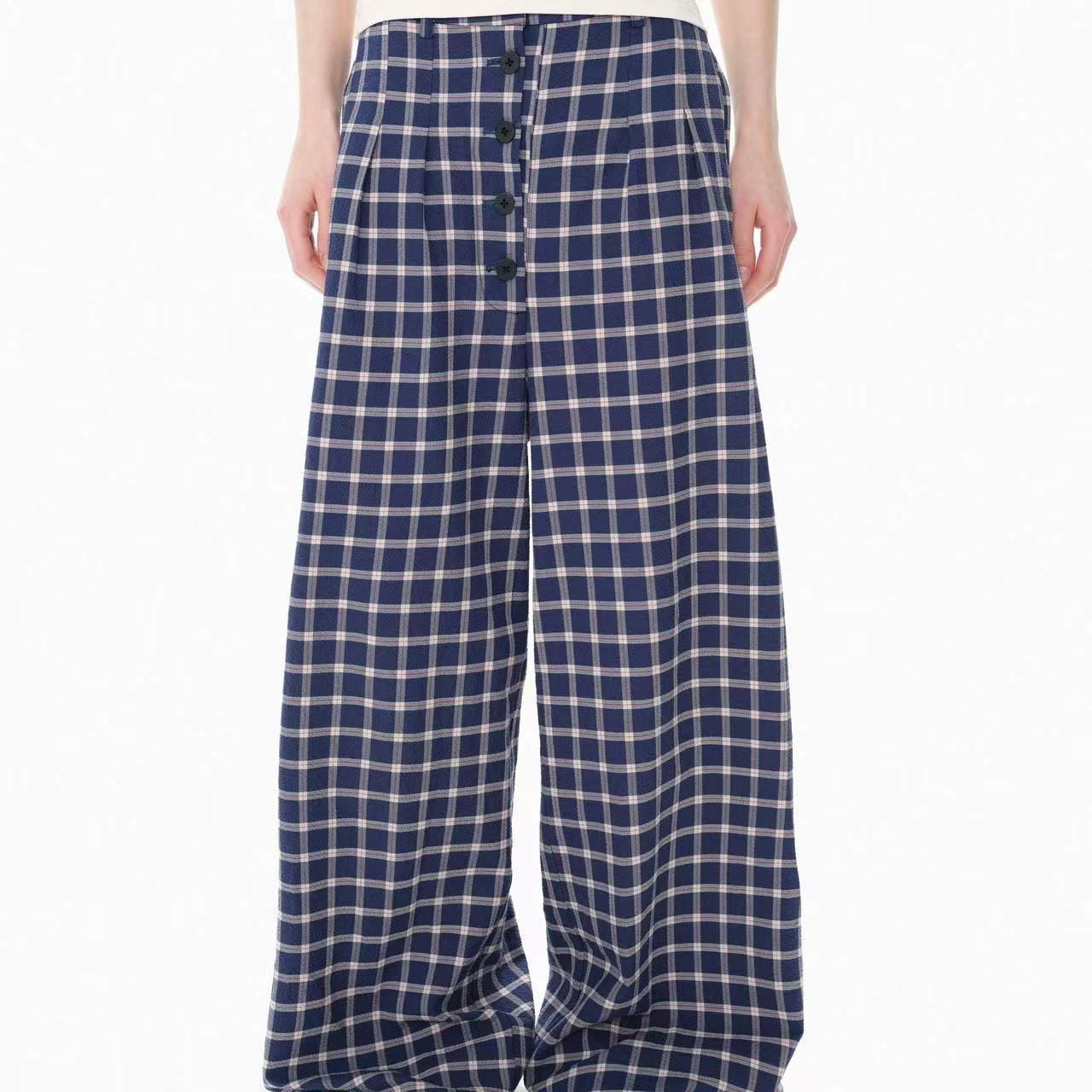 THE ROW Womens Plaid Loose Wide-leg Medium Casual Trousers Summer Pants