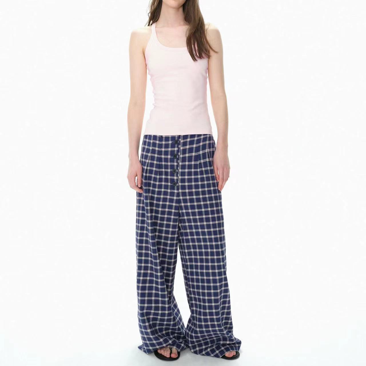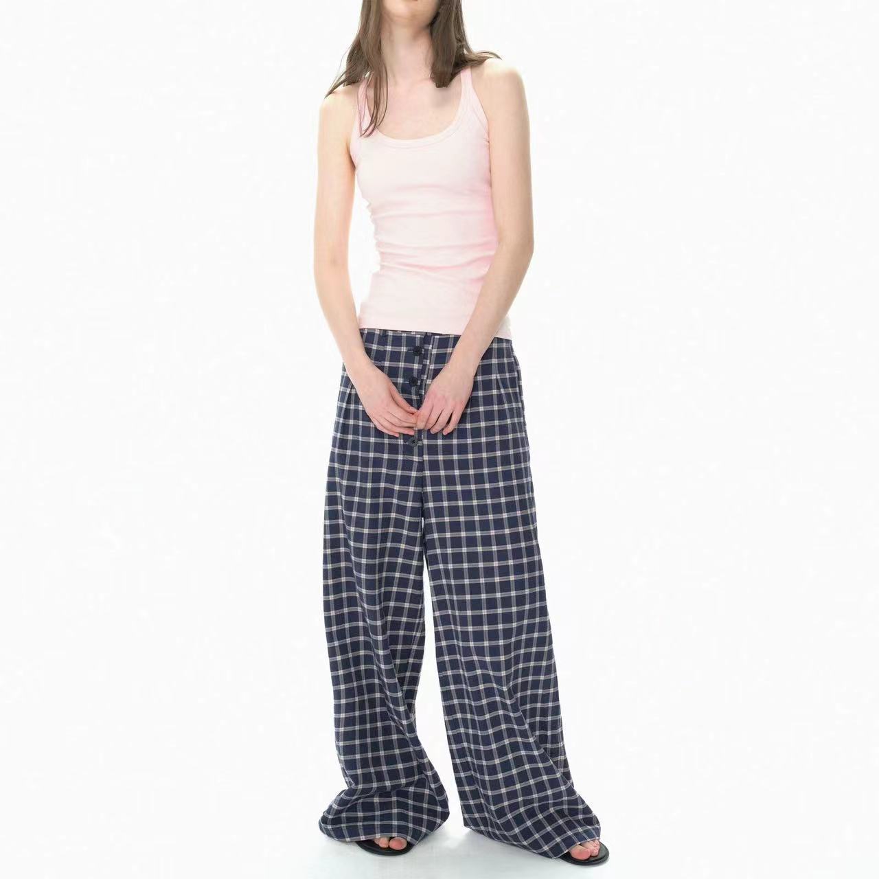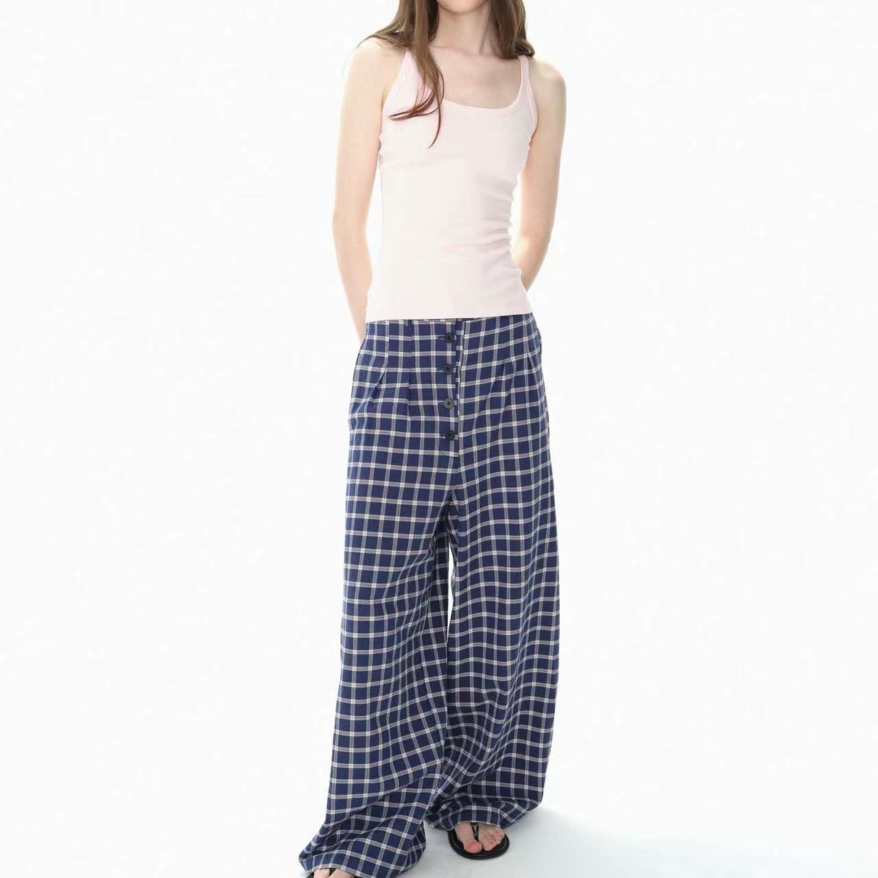 THE ROW Womens Plaid Loose Wide-leg Medium Casual Trousers Summer Pants