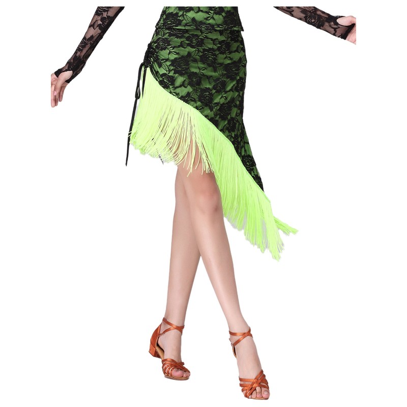 Die florale Spitze und der Quastenbesatz verleihen einen Hauch von Eleganz und Weiblichkeit und machen den Rock zu einer trendigen und modischen Wahl für Tänzerinnen.