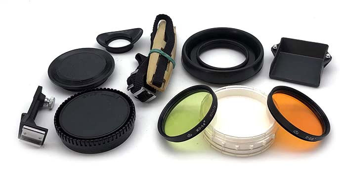 The camera is modified and CLA-ed by Hartblei. Film advance and frame spacing are adjusted. No light leaks. All shutter speeds work properly. Lens is clear, no scratches, free of dust or fungus. Focusing and stopping are smooth. Viewfinder is clean.