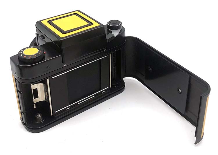 Camera has Exclusive Black trim and Yellow leather finish. The body interior is flocked to prevent light leaks.
