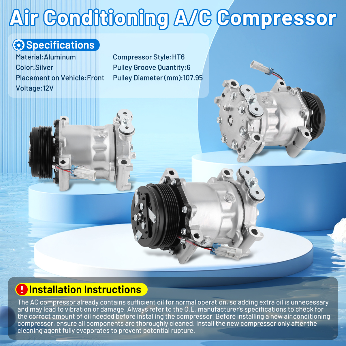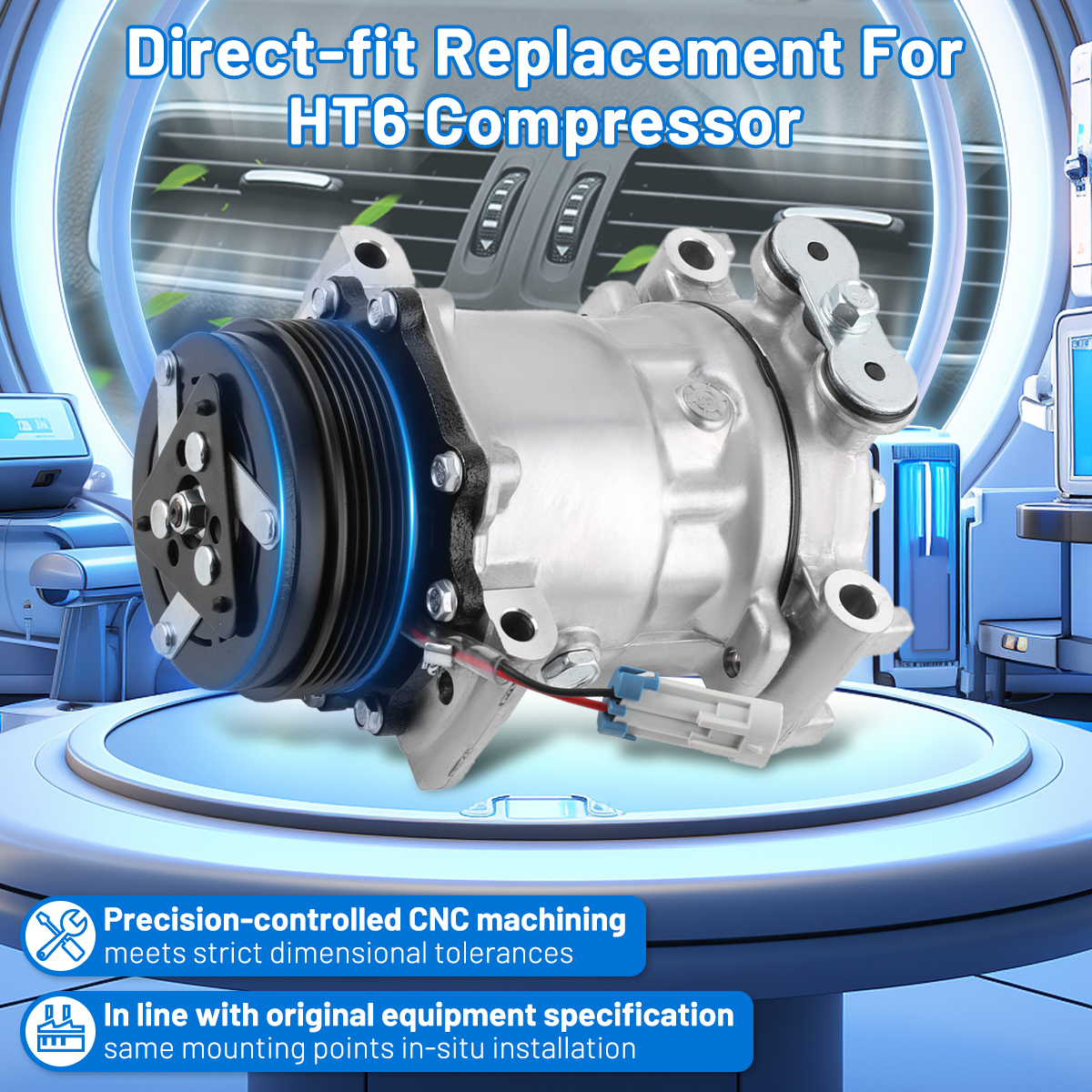 12V AC Compressor with Clutch – HT6 Style, 6-Groove Pulley – Fits Hummer, Chevrolet, GMC & More