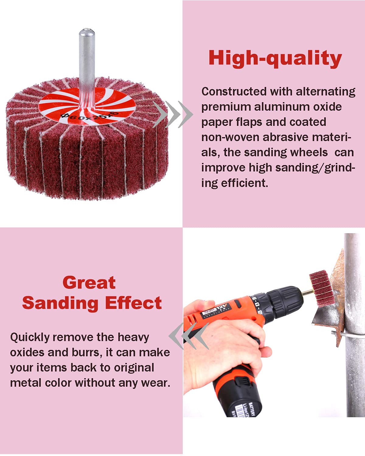 QUALITY MATERIALS – These Flapper Wheel Buffing Flap Wheels are made up of premium quality materials that is proven and tested for its durability and functionality. Our flap disk is an abrasive disk, used for metal finishing. Unlike the simpler flat disks, made from a circular flat sheet of a coated abrasive, a flap wheel is made of multiple overlapping small pieces or 'flaps', bonded to a central hub. It produces an excellent fine finish Includes the most necessary.