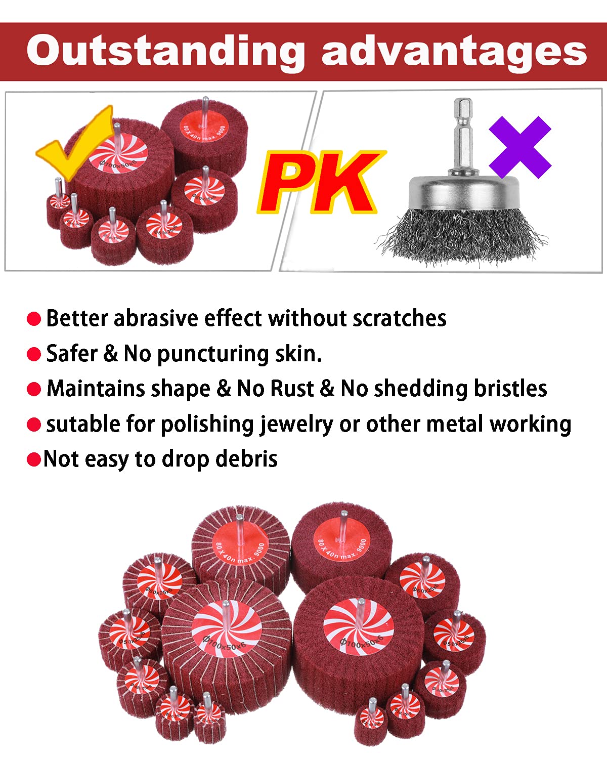Used for removing rust, dirt, oxide in metal welding, paint painting, concrete construction, etc. Suitable for polishing&deburring on the surface of ferrous and non ferrous metal.