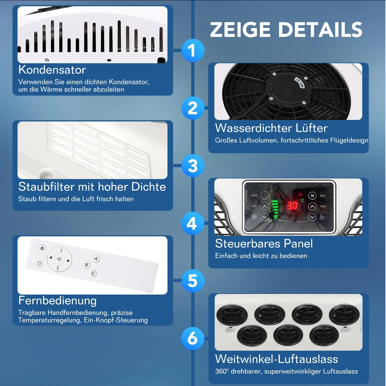 RV-Klimaanlage, Wärmepumpe, Camper, nicht kanalisierte Dachklimaanlage, integrierte Heizung und Kühlung