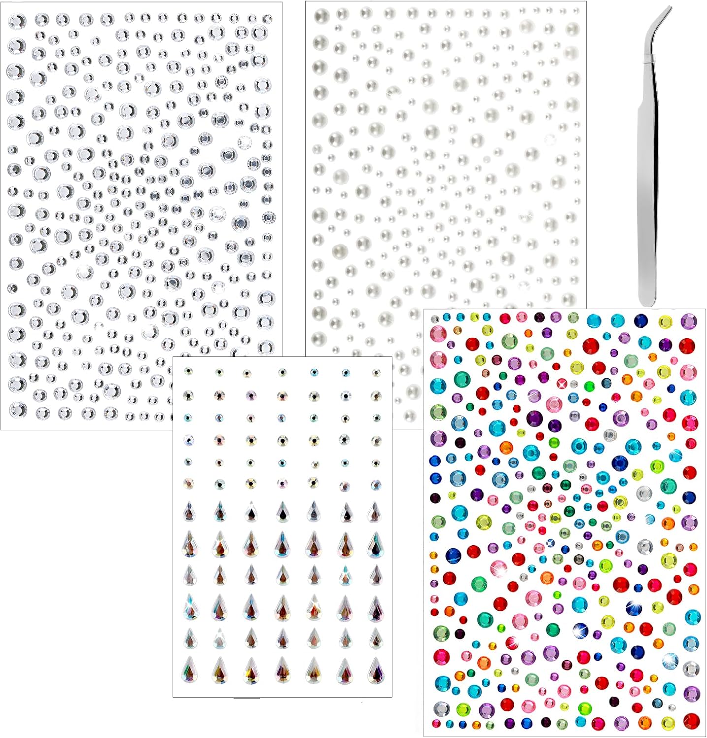 - Make Face Gem SetPackage includes 4 sheets of face gem stickers( 2 sheets of face rhinestone stickers, 1 sheet of hair pearl stickers, and 1 sheet of drop face jewels stickers) in various sizes and colors, ideal for freckles, eye gems, or festival makeup. Also includes a convenient tweezer for easy application.