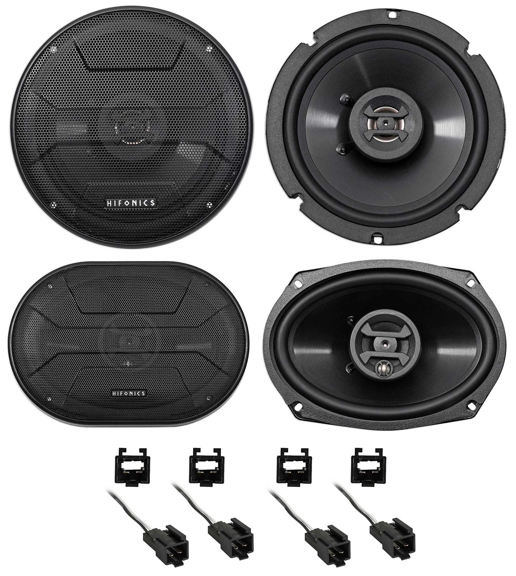 Package: Pair Hifonics ZS65CXS 6.5" 600 Watt Shallow Mount Car Speakers + Pair Hifonics ZS693 6" x 9" 800 Watt Car Speakers + (2) Metra 72-6512 Speaker Harness Connector Adapter for Select Chrysler, Jeep, Dodge, and Plymouth Vehicles 90-07+Cherokee
