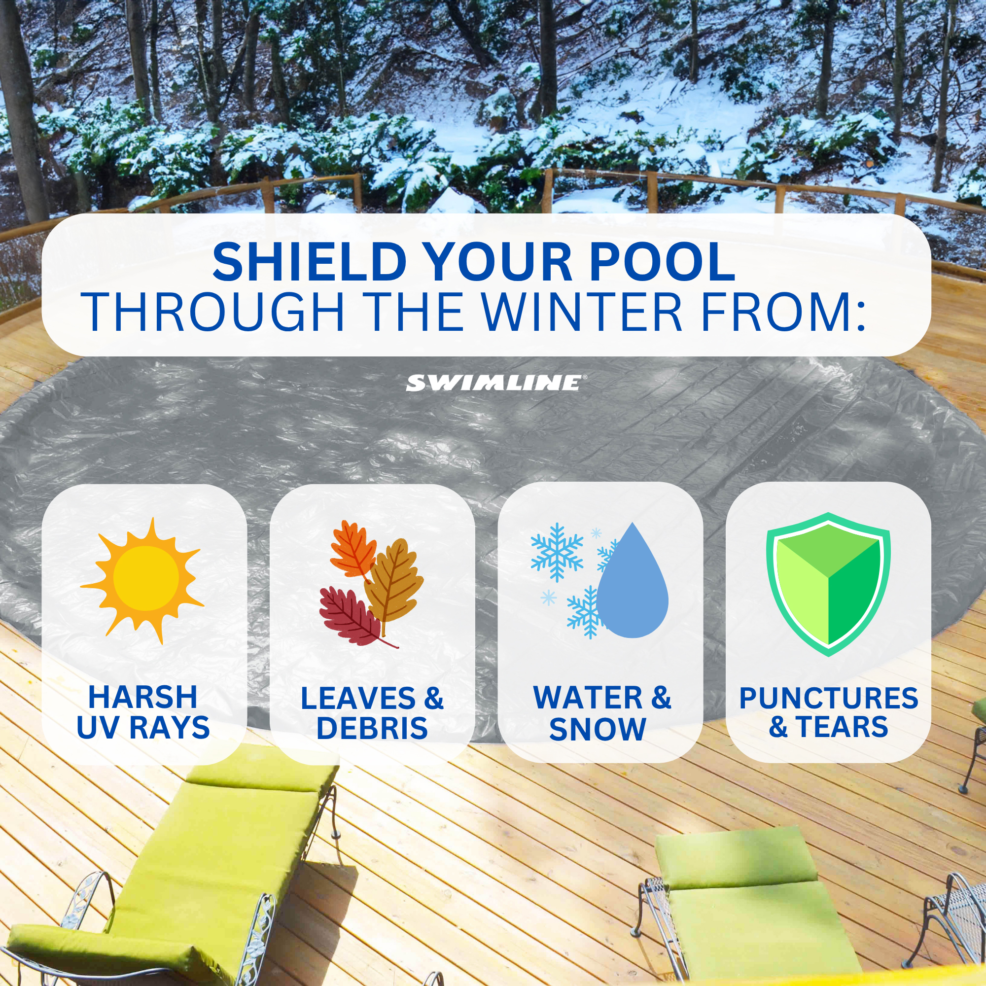 Introducing the SWIMLINE HYDROTOOLS Heavy Duty Pool Covers, your ultimate solution for preserving the quality and longevity of your above-ground swimming pool through the winter season. Designed with the highest standards, our pool covers effectively keep out snow, ice, and debris, ensuring your pool remains in pristine condition, ready for the next swim season.