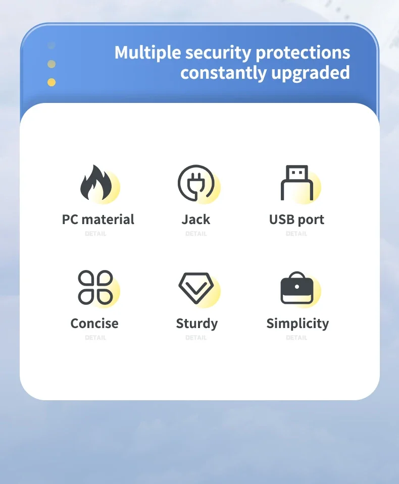 3. Steckbuchsen-Zahntechnologie Kompatibel mit vielen lokalen und internationalen Standardsteckern, Verwendung von Phosphorbronze für die innere Steckbuchse. Perfekte Leitfähigkeit und Elastizität. Hat die Sicherheitsprüfung durch eine nationale Fachinstitution bestanden.