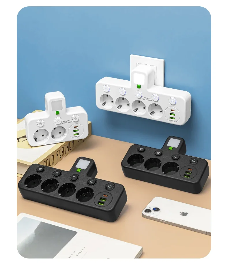 * Verlängerungssteckdose für zu Hause: Büro-Stecker mit Steckdose/intelligente Steckdosenleiste (EU)/Steuerschalter für Nachtlicht