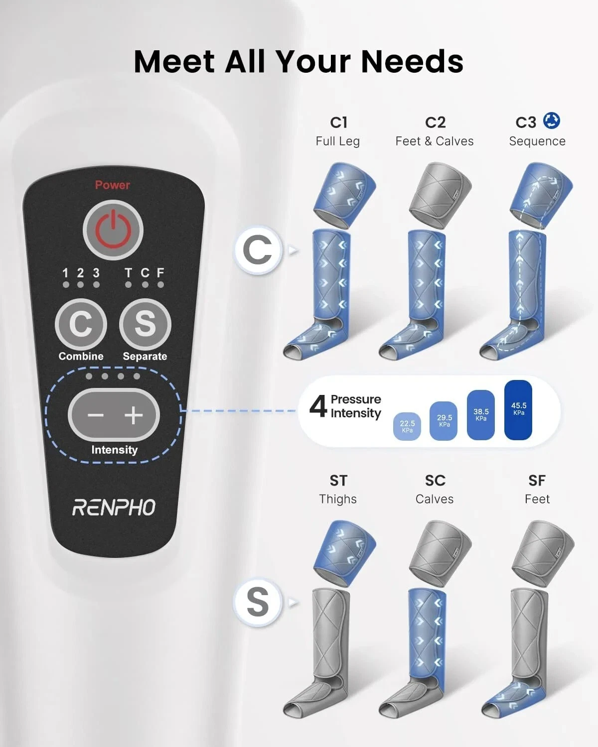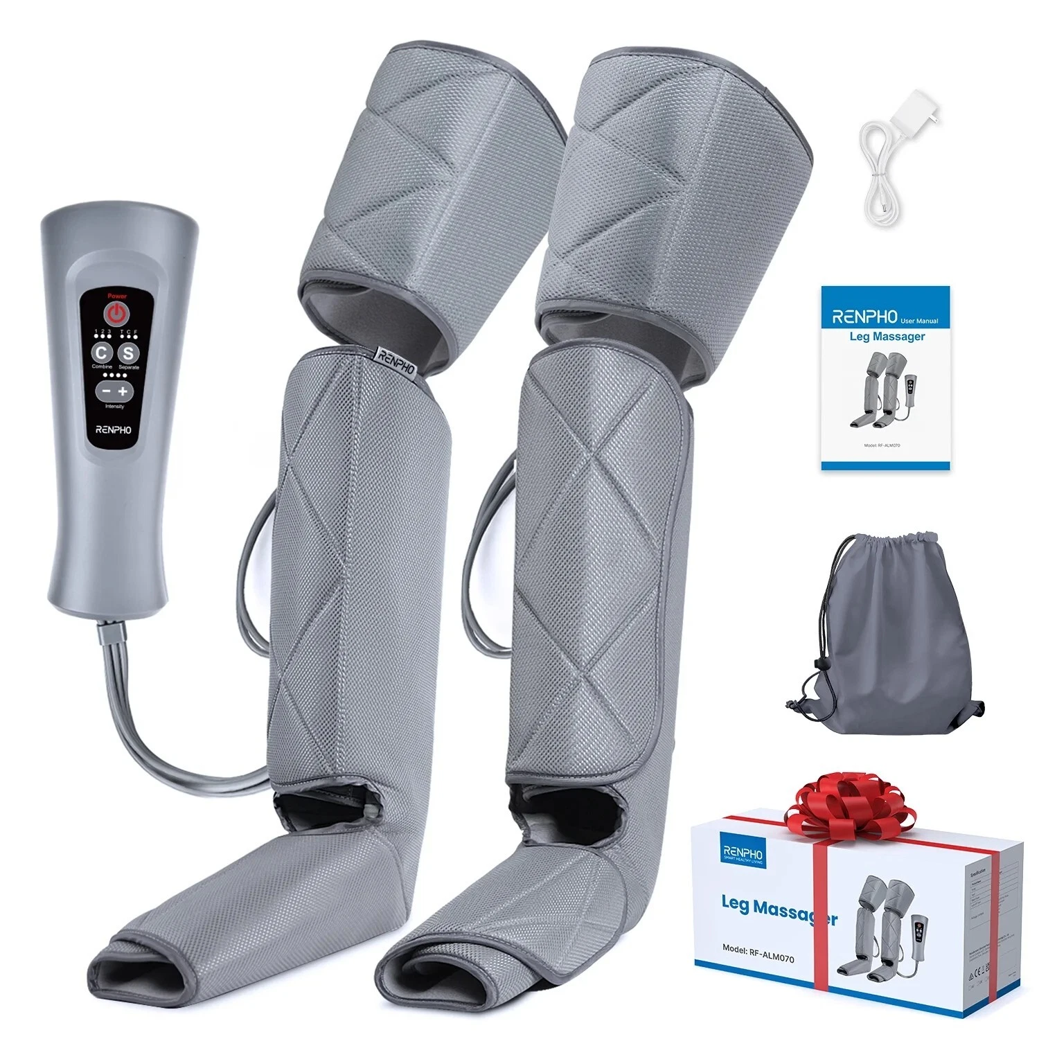 Experience customizable leg relief and daily comfort with the RENPHO Compression Leg Massager, designed to support circulation and muscle relaxation from foot to thigh. This full-leg compression system features five massage modes and two levels, delivering a tailored massage experience to help ease post-workout fatigue or day-to-day tension. The adjustable wrap design fits a wide range of sizes and includes extension wraps to comfortably accommodate larger legs. Whether youโre recovering from activity or looking for relaxation at the end of a long day, the RENPHO leg massager offers a versatile solution at home.