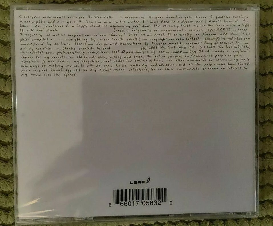 Everyone Alive Wants Answers is the debut album from French composer Colleen (Cécile Schott), released on The Leaf Label in 2003. Known for its delicate textures and loop-based compositions, the album blends ambient minimalism with acoustic instrumentation, creating a dreamlike, introspective soundscape. Built from samples and live recordings, it marked a defining moment in early 2000s experimental electronica.