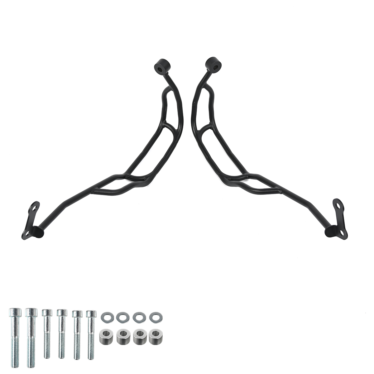 The black powder-coated steel construction is able to withstand enormous pressures, is easy to mount and gives your motorcycle an exciting Offroad look.