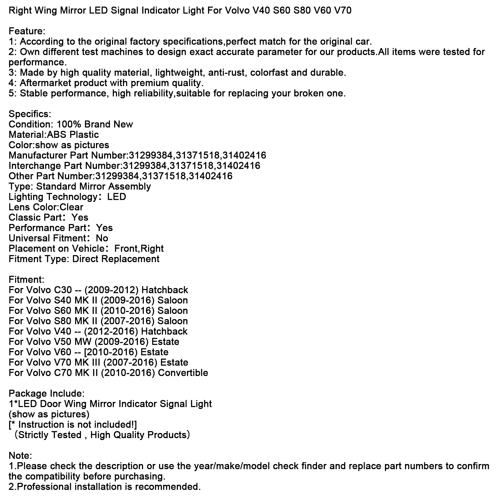 Manufacturer Part Number:31299384,31371518,31402416