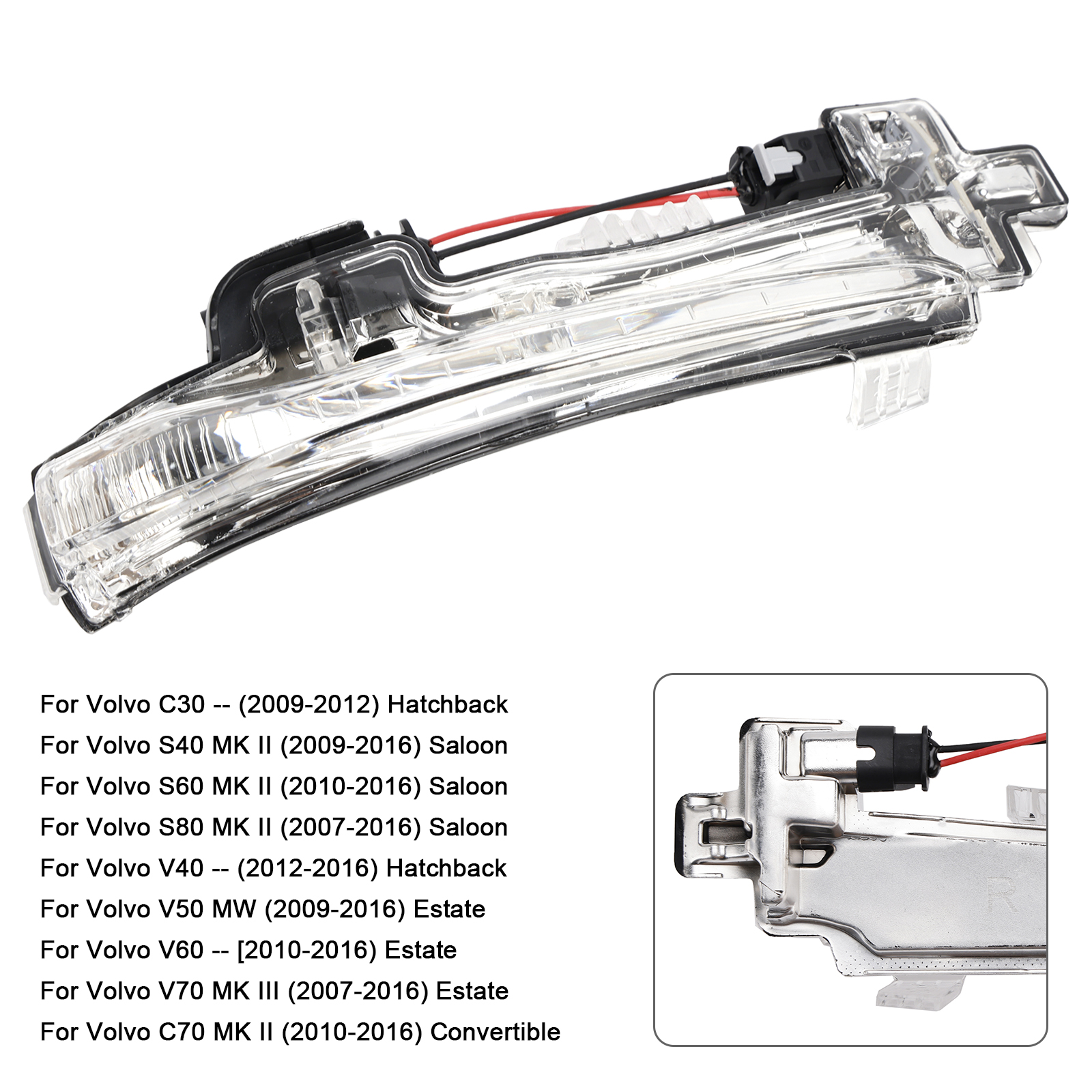 Right Wing Mirror LED Signal Indicator Light For Volvo V40 S60 S80 V60 V70