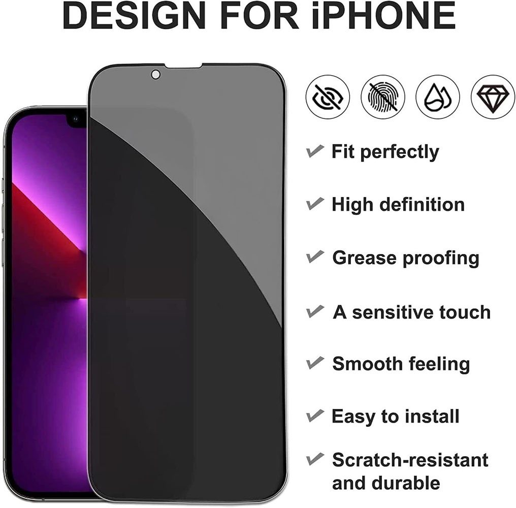 - 【9H Hardness Protection and High Touch Sensitivity】:Our premium quality For iPhone Privacy screen protectors made by premium 9H glass materials, much more flexible and shatterproof. Highly durable, and scratch proof resistant- 9H Hardness and topped with oleophobic coating to reduce fingerprints on your glass screen protector. The ultra-thin design specially designed for iPhone models screen protector can ensure the high sensitivity and accuracy of the mobile phone screen, fast and smooth response.