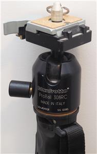- The Manfrotto Pro-Ball 308RC head is heavy duty. It’s designed to hold about 8.8lbs. (The monopod will hold about twice that) The lever release not only allows full movement of the ball, it allows the turning of the head. It includes a quick-release plate and a screw on cover for the threads which allows for an easy clip-on strap or hanging for storage.