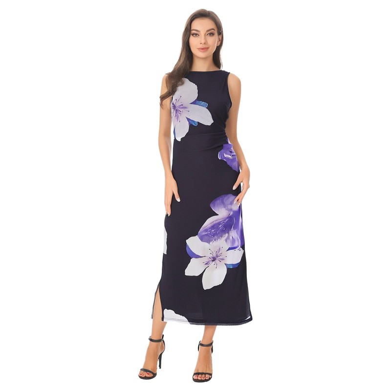 Side ruching and a slit detail enhance the body-con silhouette, adding a touch of elegance and allure, making you stand out from the crowd.