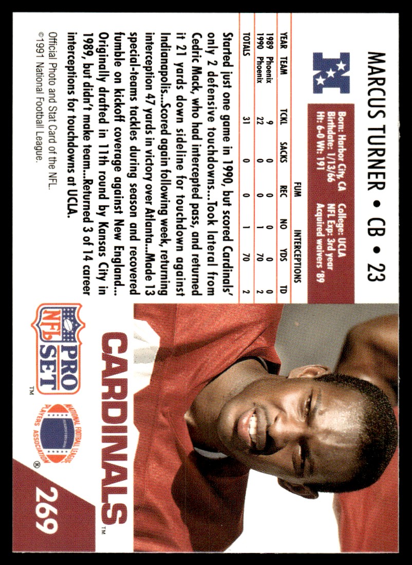 | 1991 Pro Set Marcus Turner Rookie Phoenix Cardinals #269 |